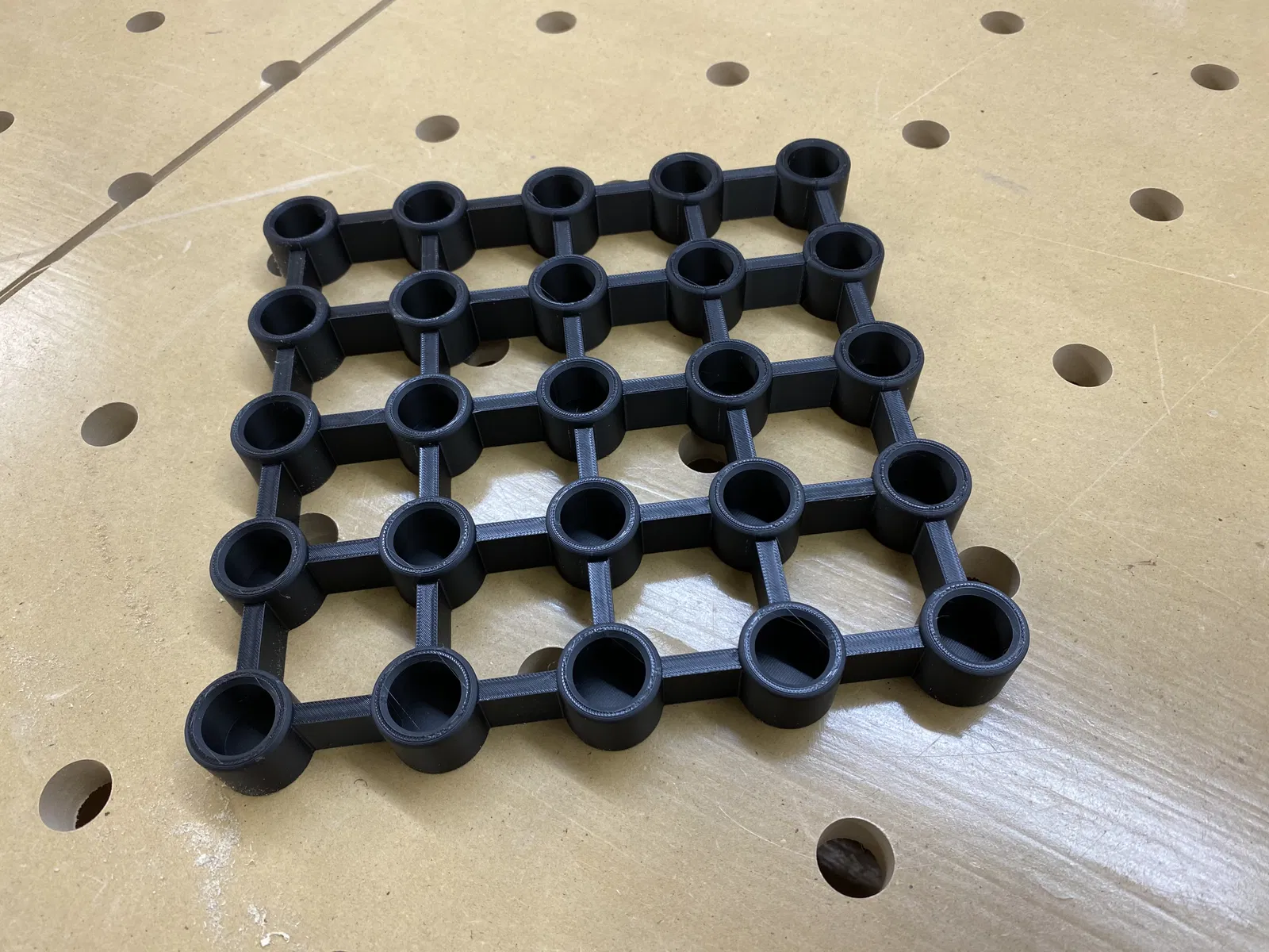 Đây là một bộ tổ chức cho các chốt bàn 20 mm. Các lỗ có đường kính 20,5 mm để vừa vặn thoải mái. Có phiên bản 6x6 và 6x3. Dễ in, không cần hỗ trợ hoặc thậm chí cả mép (brim).