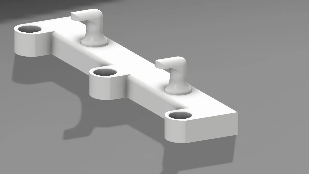 Móc treo đồ đơn giản cho phòng tắm, có 2 chỗ treo đồ và 3 lỗ bắt vít tường. Thiết kế bo tròn mềm mại, lỗ bắt vít rộng giúp dễ dàng lắp đặt trên mọi bề mặt tường. Chất liệu ABS/PETG, độ đặc 25-30%, layer 0.2mm, không cần support.