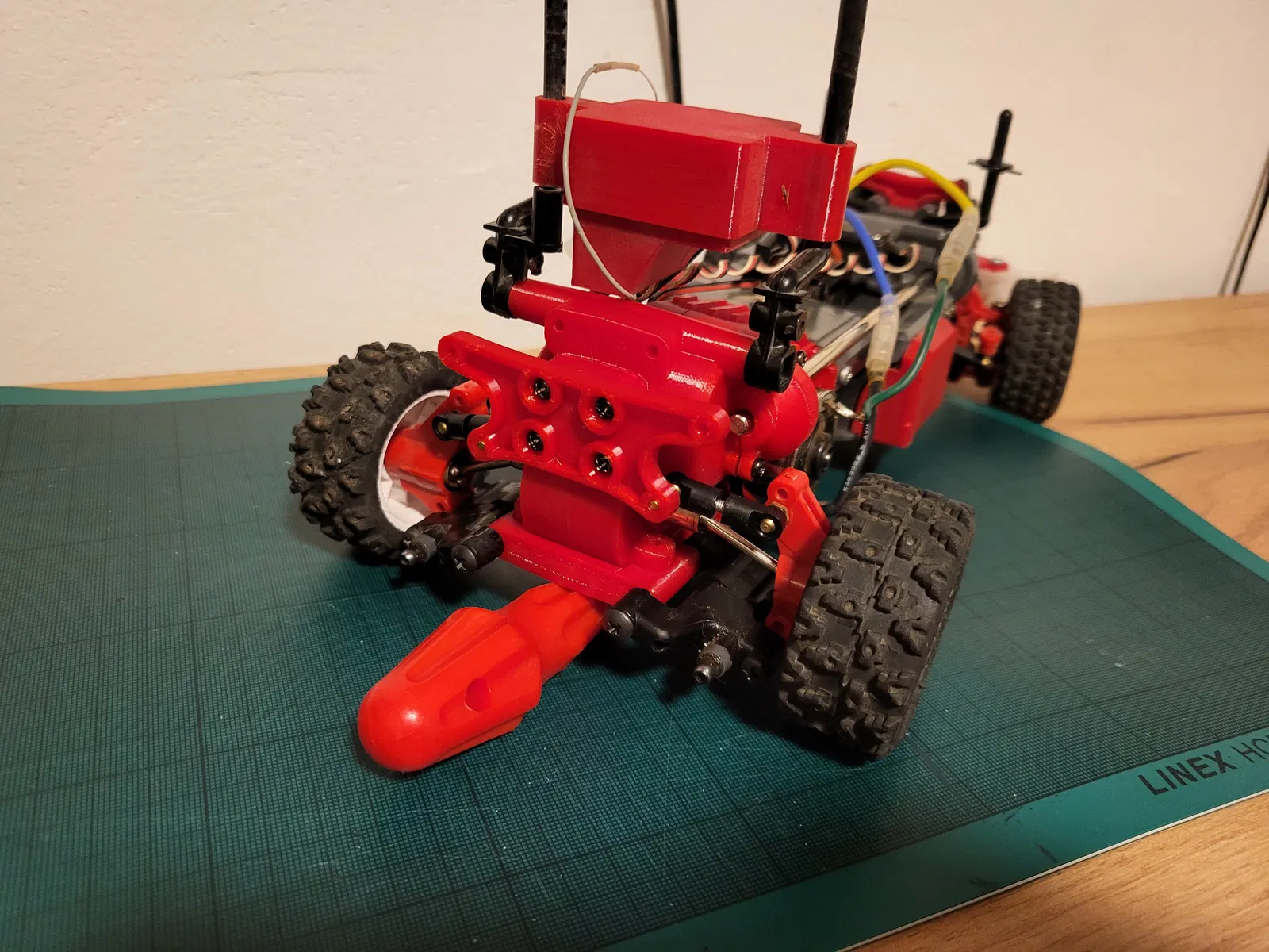 Chế lại pát giảm xóc sau cho xe MF-01X, dùng bass nối dài ngắn giống M-05. Cần mua thêm phụ tùng hoặc bộ tay đòn chỉnh. Ốc dư dùng lại từ cục nối càng sau.