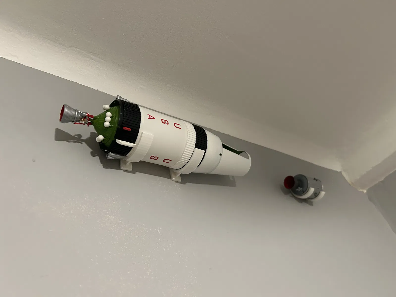 Giá treo tường cho mô hình Revell Saturn V tỉ lệ 1:96. Bản chỉnh sửa từ thiết kế của Tyler_thecreator, được thiết kế lại từ đầu nhưng vẫn giữ nguyên ý tưởng gốc. In các bộ phận theo chiều phẳng để tăng độ bền, sử dụng đinh hoặc vít để treo.