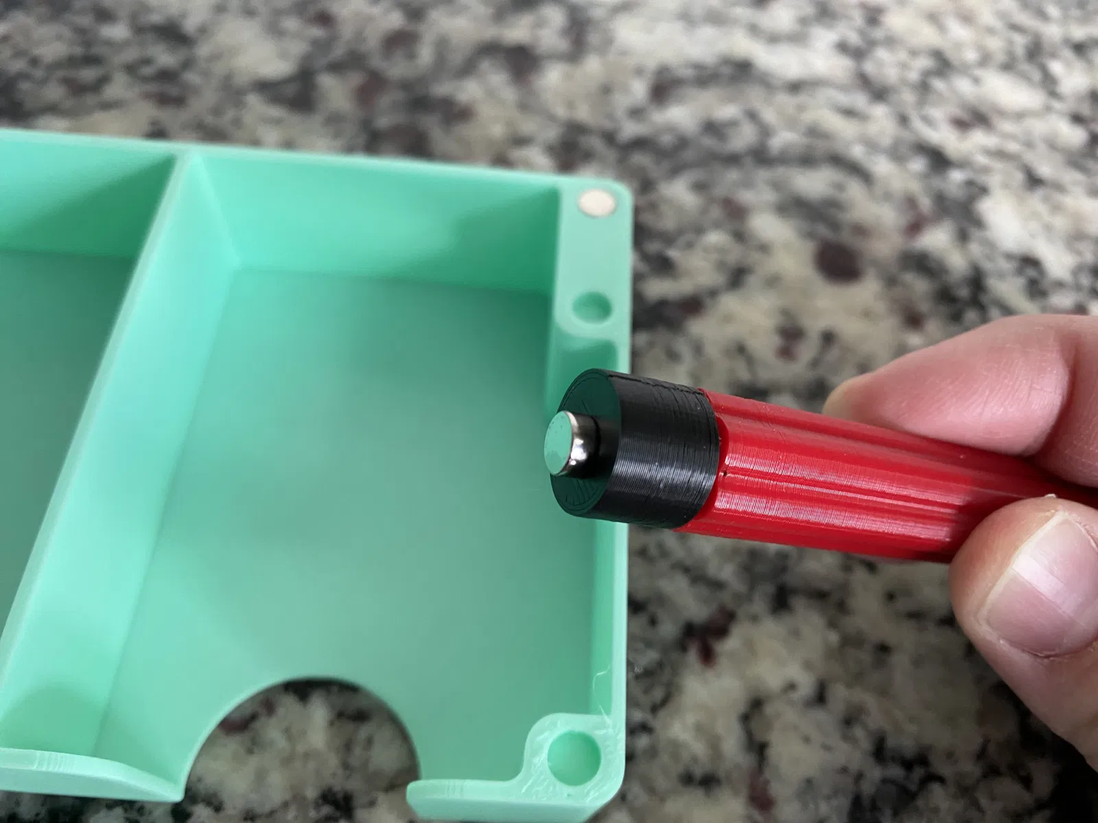 Cái dụng cụ nam châm nhỏ gọn này sẽ giúp bạn không bao giờ bị lộn cực nam châm nữa. Chỉ cần dùng một màu/thiết kế (thân thiện với người mù màu) để gắn nam châm vào một mặt, và dùng cái kia ở mặt đối diện để khớp hoàn hảo.