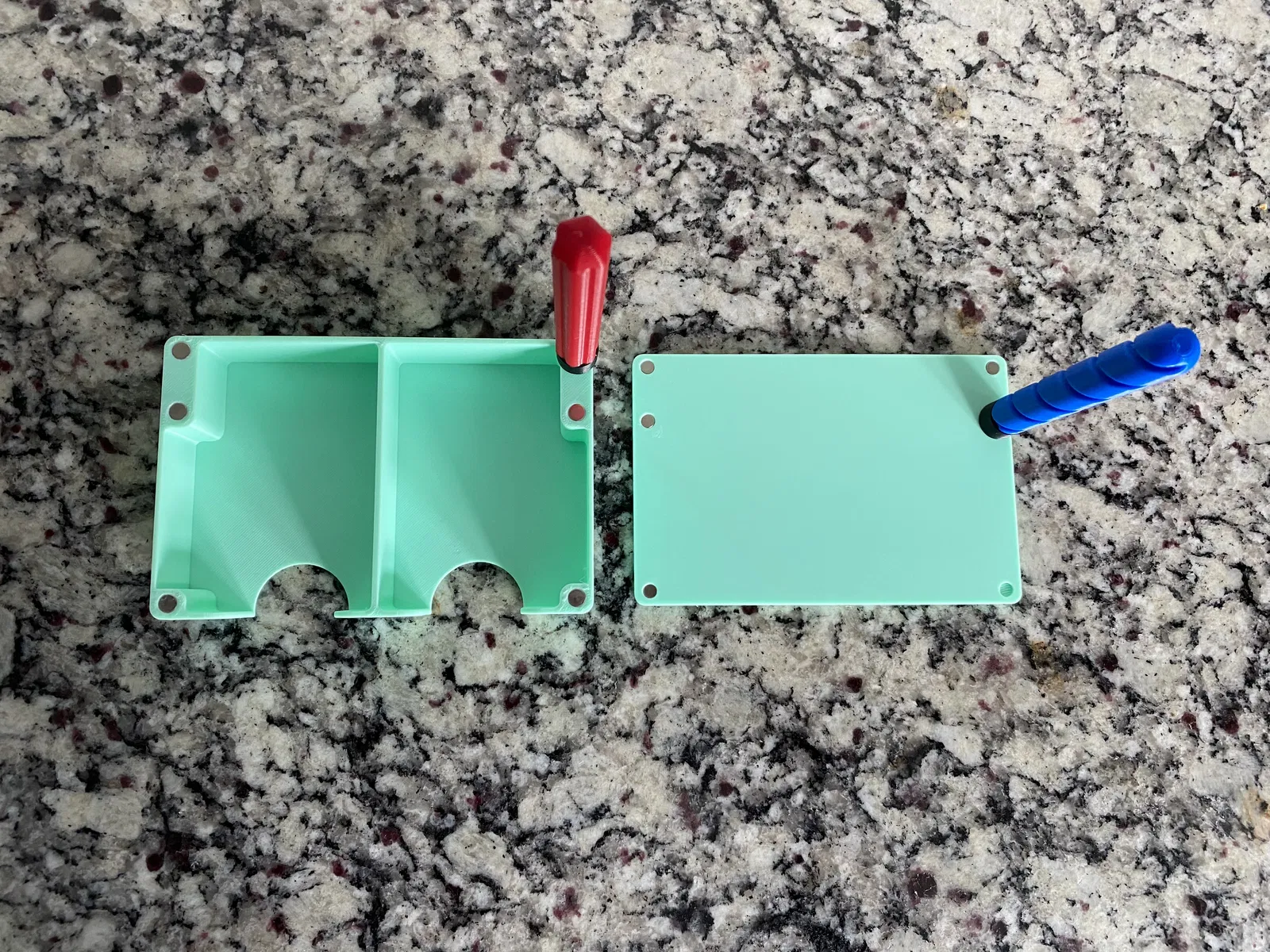 LẮP RÁP: Chọn một kiểu trục và in nó cùng với một cái của mỗi mảnh nhỏ với màu bạn thích. (Tôi thích in "Nắp Dụng Cụ Nam Châm" màu đen). Dùng keo gắn các mảnh lại với nhau, dùng chốt nhỏ để căn chỉnh mọi thứ cho đúng. Gắn nam châm vào chỗ lõm bên trong theo bất kỳ hướng nào. Để khô hoàn toàn trước khi gắn nắp. Bạn có thể gắn chặt nắp lại nếu muốn, nhưng tôi thích có thể tháo nó ra nếu bị dơ quá.