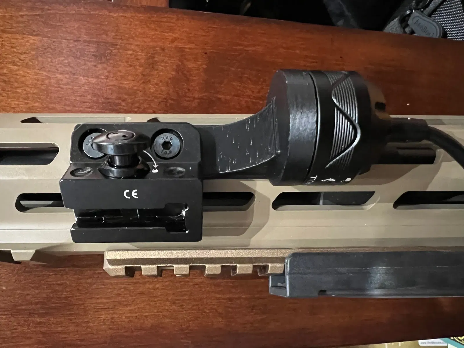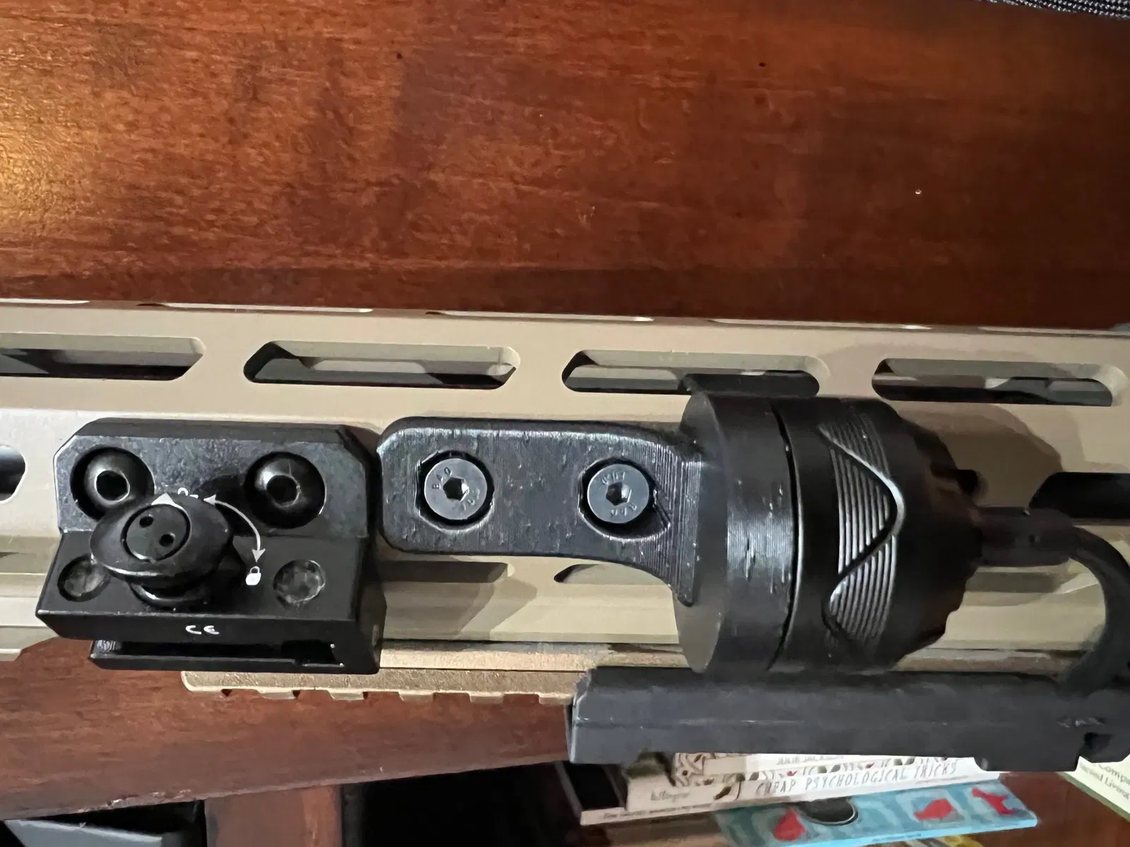 Có hai mẫu. Một mẫu gắn qua M Lok một mình. Mẫu còn lại gắn vào M Lok cùng với giá đỡ đèn pin. Phiên bản gắn với giá đỡ đèn sẽ cần các vít dài hơn so với những gì giá đỡ OLight tiêu chuẩn đi kèm.
