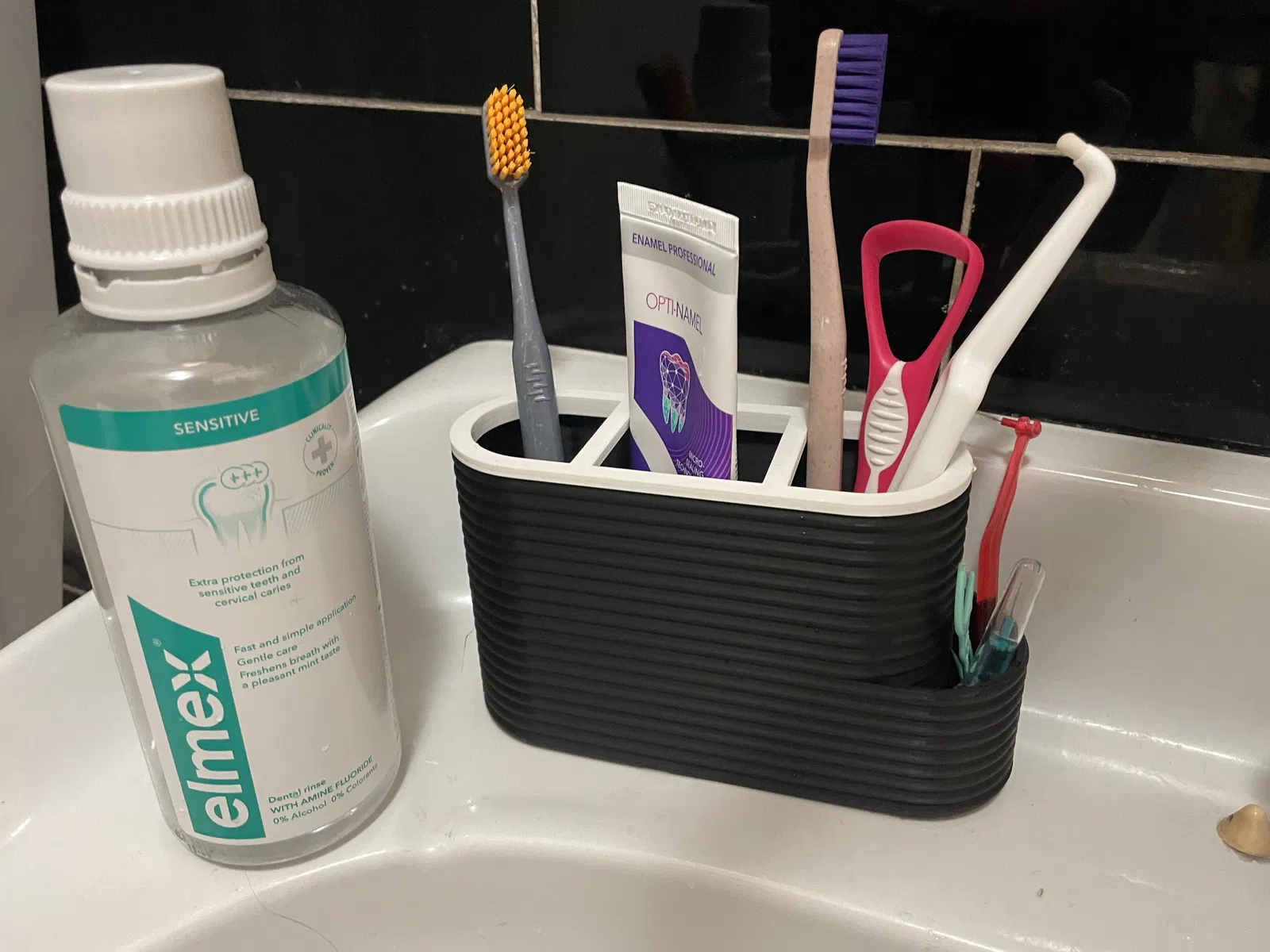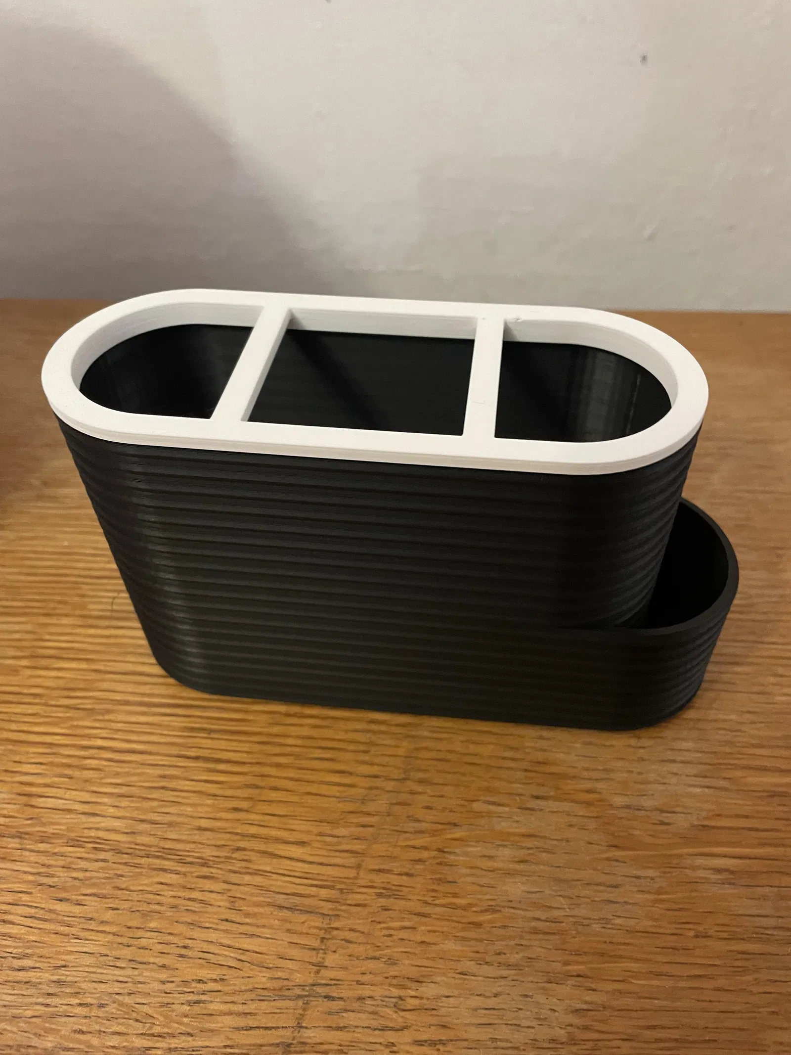 Phiên bản nâng cấp của kệ đựng bàn chải và kem đánh răng, có thêm vách ngăn và ngăn chứa cho cọ kẽ răng. Thiết kế đẹp mắt, tiện dụng cho phòng tắm của gia đình bạn.