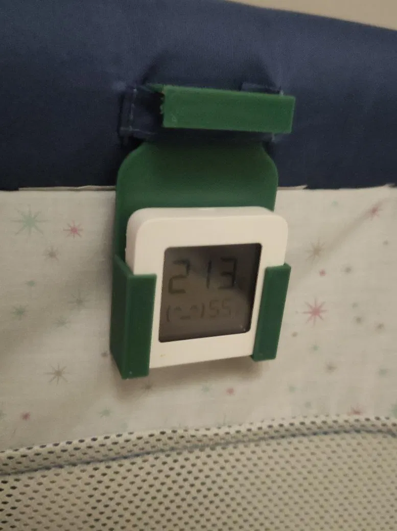 Đây là mẫu in 3D đầu tiên của mình. Nó là cái đế giữ cho Mi Temperature and Humidity Monitor 2, để gắn vào Chicco Next2Me Dream và theo dõi nhiệt độ xung quanh bé sơ sinh/trẻ nhỏ.
