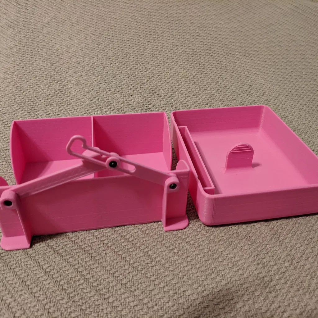 Tui lúc nào cũng kỹ tính lắm, muốn giữ mấy bộ game tui chơi cho thiệt bền, xài cả đời luôn á. Nên tui mới thiết kế cái hộp này để mấy món đồ bên trong khỏi có va đập, cọ sát vô nhau trong hộp nè. Thiết kế để in mà ít tốn vật liệu hỗ trợ nhất.