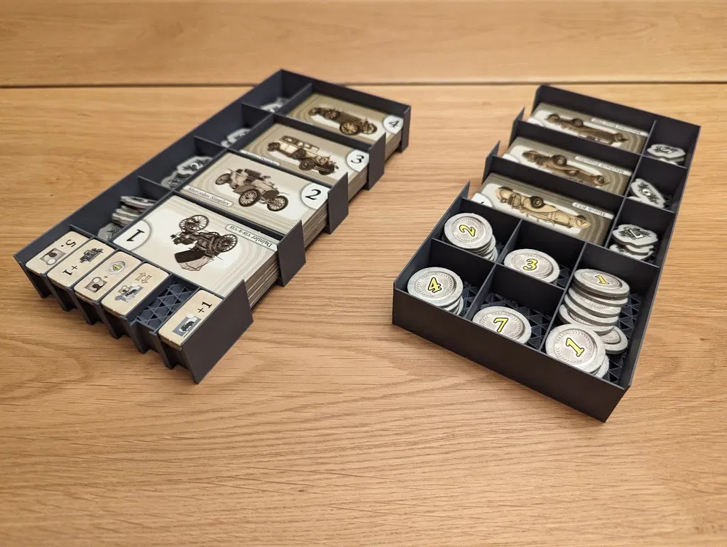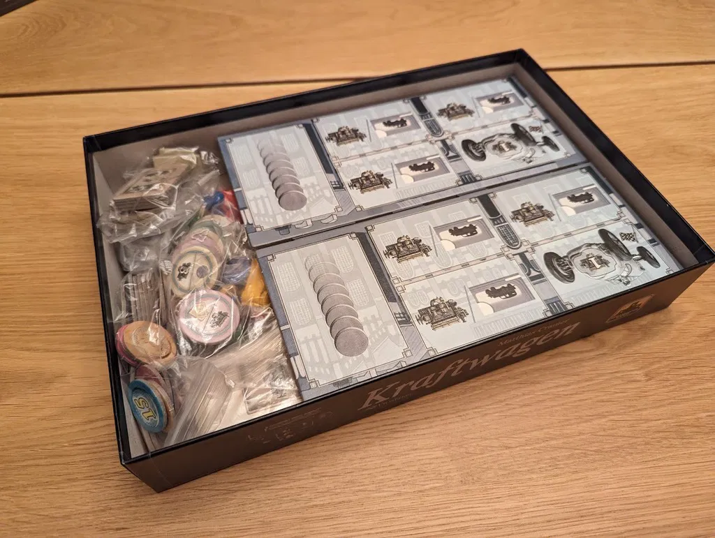 Trình tổ chức thành phần cho trò chơi bảng Kraftwagen, được thiết kế để giữ thường được sử dụng trong các thành phần chơi trò chơi. Các thành phần thiết lập được đóng gói. Các bảng người chơi phù hợp với đỉnh của người tổ chức để giữ cho tất cả các thành phần không trượt xung quanh (vâng, các đầu của bảng dính ra, đó là để giữ cho nhà tổ chức trong giới hạn thoải mái cho giường máy in).