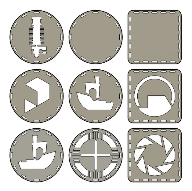 Bộ các bản vá có thể in 3D (đường kính 82 mm và hình vuông 82 mm) để được may bằng dải Velcro, sau đó được gắn vào ba lô, bánh răng, bất cứ thứ gì bạn muốn.