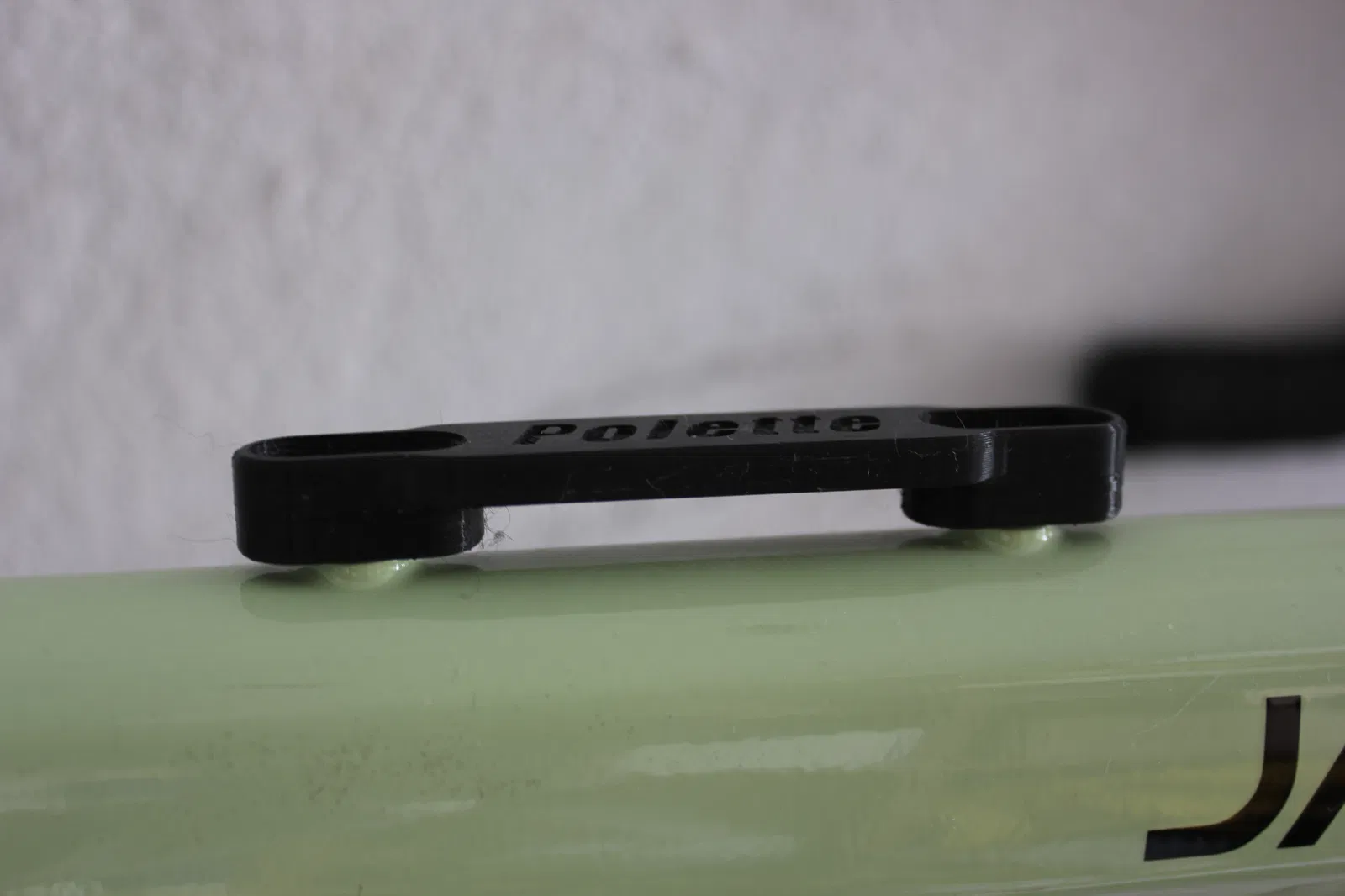 Giá đỡ xe đạp nhỏ gọn, thiết kế cho xe đạp địa hình, gắn vào khung xe. Có thể gắn vào các lỗ tiêu chuẩn của chỗ để bình nước. Cần thêm dây đai để mang đồ. Lý tưởng cho xe đạp địa hình và đi phượt.
