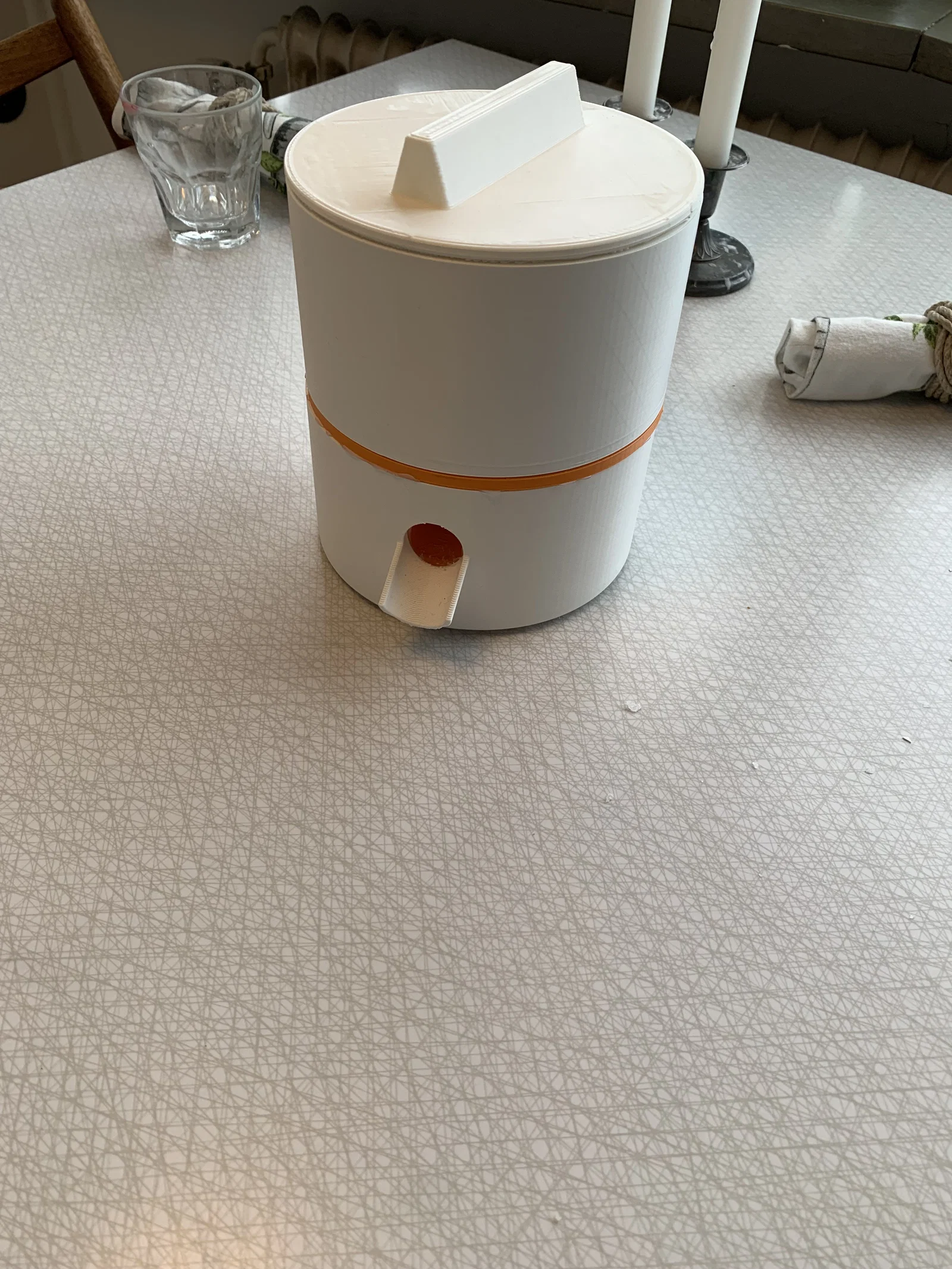 Chỉ cần xoay cái nắp là thức ăn sẽ chảy ra! Để làm được thì bạn cần in các bộ phận rồi dán chúng lại với nhau.
