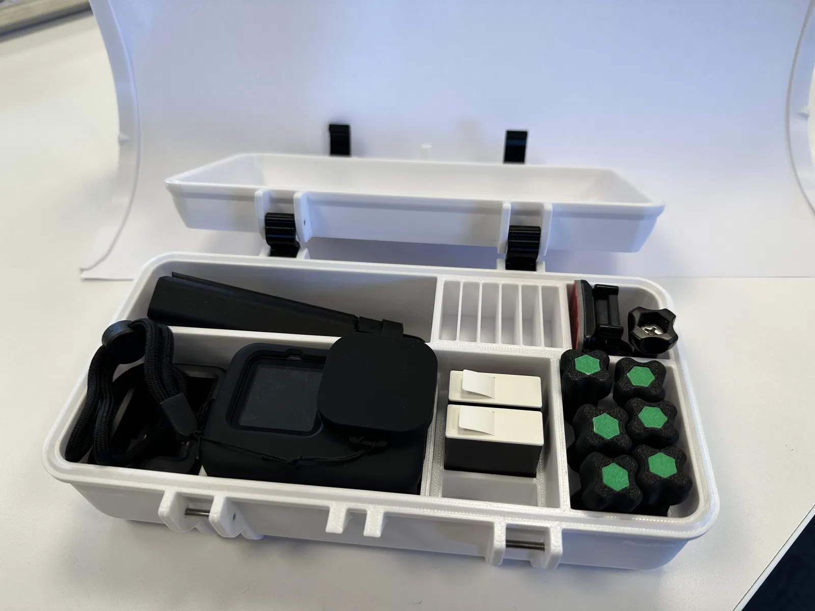 Hộp đựng chống sốc thay thế cho hộp zip đi kèm GoPro. Vừa GoPro có ốp silicon. Kèm file .3mf cho Bambu X1C và cài đặt PETG gợi ý.
