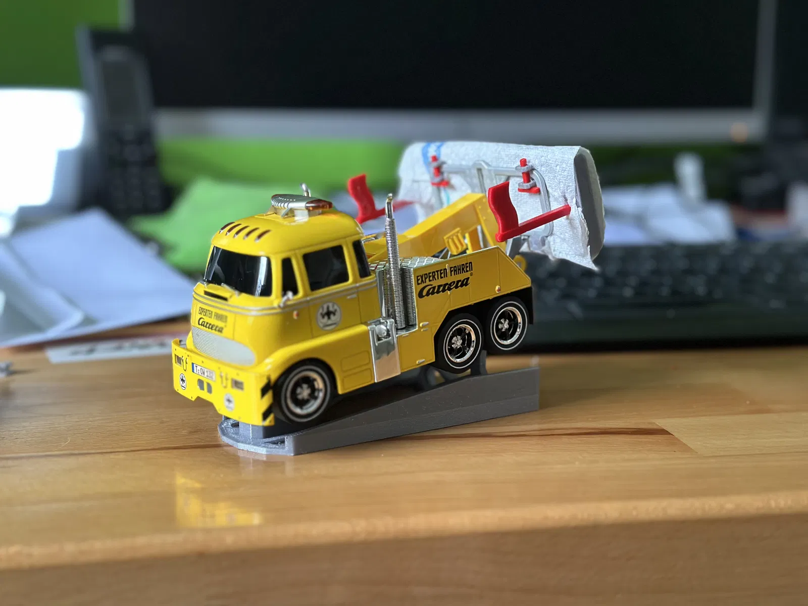 Dọn dẹp đường đua dễ dàng: với xe kéo Carrera Digital 132 và các bộ phận in, chỉ cần quấn một miếng vải quanh bệ rồi cho xe chạy vài vòng thư giãn...