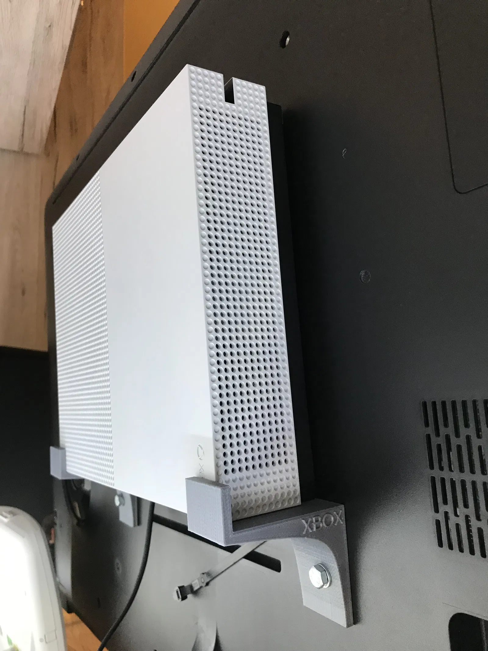 Tui đã thiết kế cái kẹp XBOX One S này để gắn vào chuẩn VESA (FDMI MIS-F). Giờ thì bạn có thể giấu cái máy console của mình phía sau TV rồi.