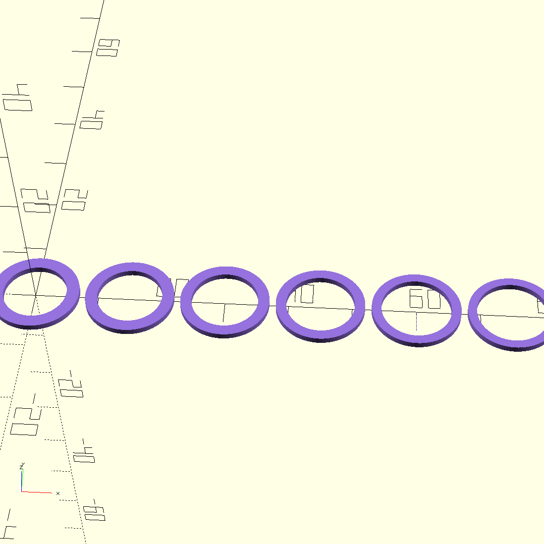 Khi in các gioăng cao su (gasket) hoặc vòng đàn hồi bằng TPU, tôi thường thấy cần phải tinh chỉnh một chút để đạt được độ khít với dung sai (tolerance) chính xác. Để tiết kiệm công sức chỉnh sửa thủ công, phiên bản có tham số này cho phép bạn in một loạt các gioăng với những thay đổi tăng dần về đường kính trong & ngoài, và độ dày.