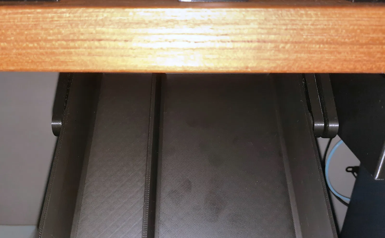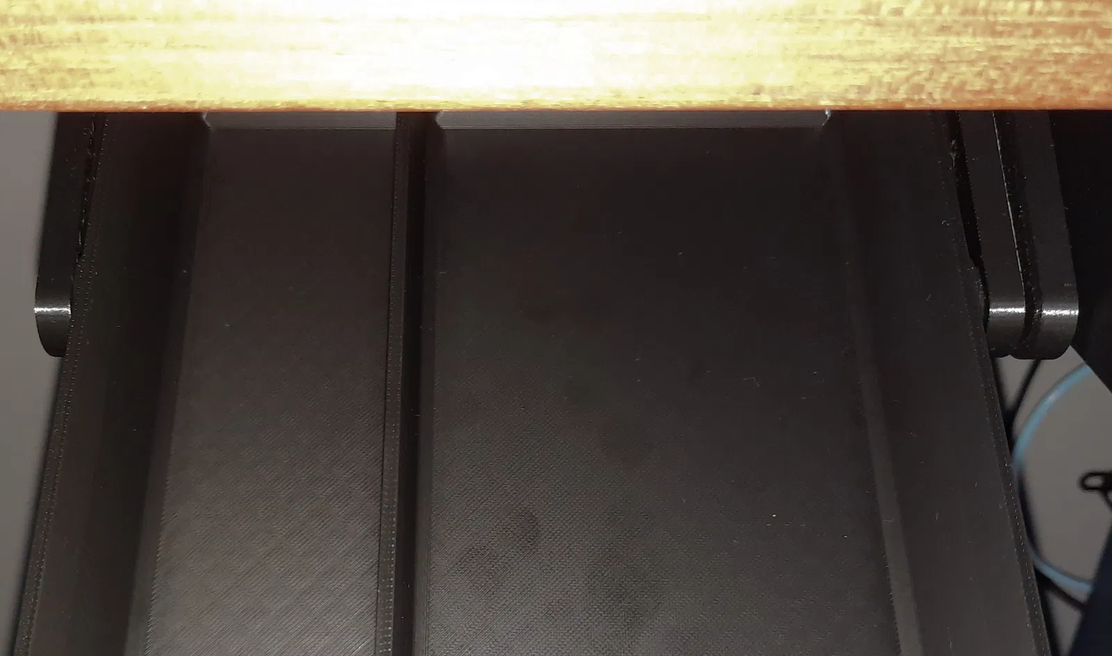 Trong thiết kế gốc, mấy cái chốt được vẽ hình tròn hoàn hảo vì chúng được in riêng và đặt phẳng trên bàn in. Nhưng bây giờ, vì chúng được in thẳng đứng cùng với hộc tủ, nên có một chút biến dạng và vài vết sọc do trọng lực. Cái này cũng có thể làm tăng ma sát. Tuy nhiên, nếu bạn bôi mỡ như tui nói, và kéo ra vô vài lần, thì nó sẽ bắt đầu nới lỏng khá nhanh, và nó chạy rất mượt mà.