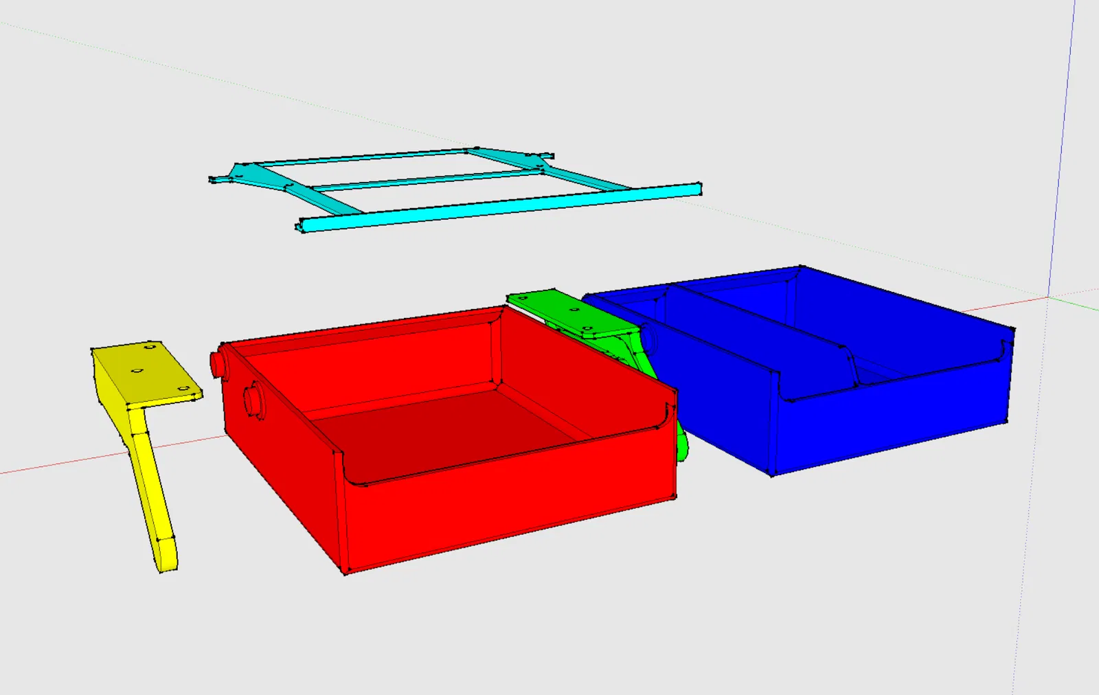 Một cái tui không thích ở bản gốc là mấy cái chốt trượt của hộc tủ phải dán keo sau khi in xong. Tui cũng không hiểu tại sao lại phải làm vậy. Chắc do khổ in trên bàn in nó bị giới hạn hả? Mà dù sao thì, việc gắn chốt vô thân hộc tủ luôn là một thay đổi đơn giản và hiển nhiên đối với tui. Rồi tui mới làm cái dễ òm là giảm chiều rộng hộc tủ cho vừa với nhu cầu của mình.