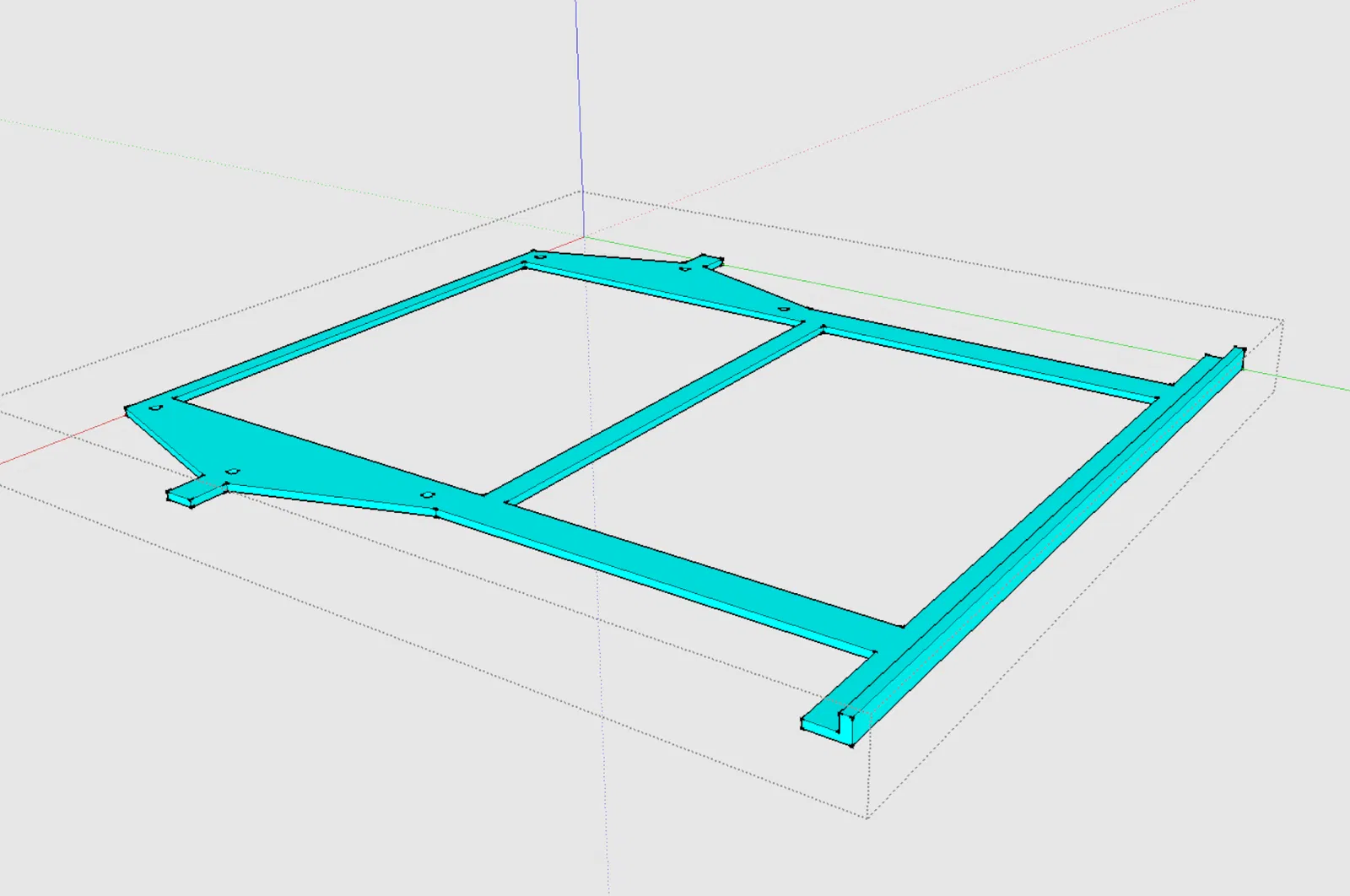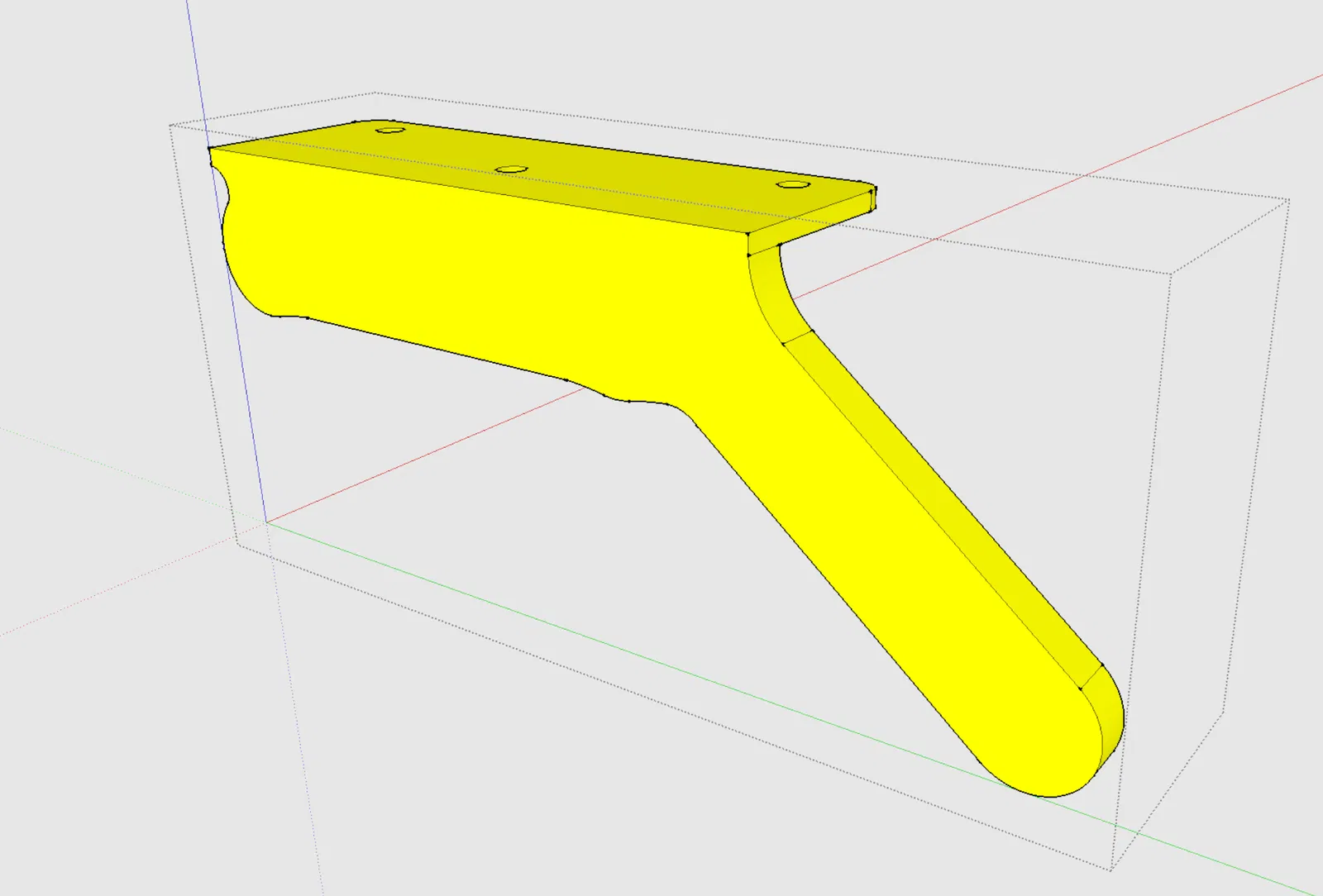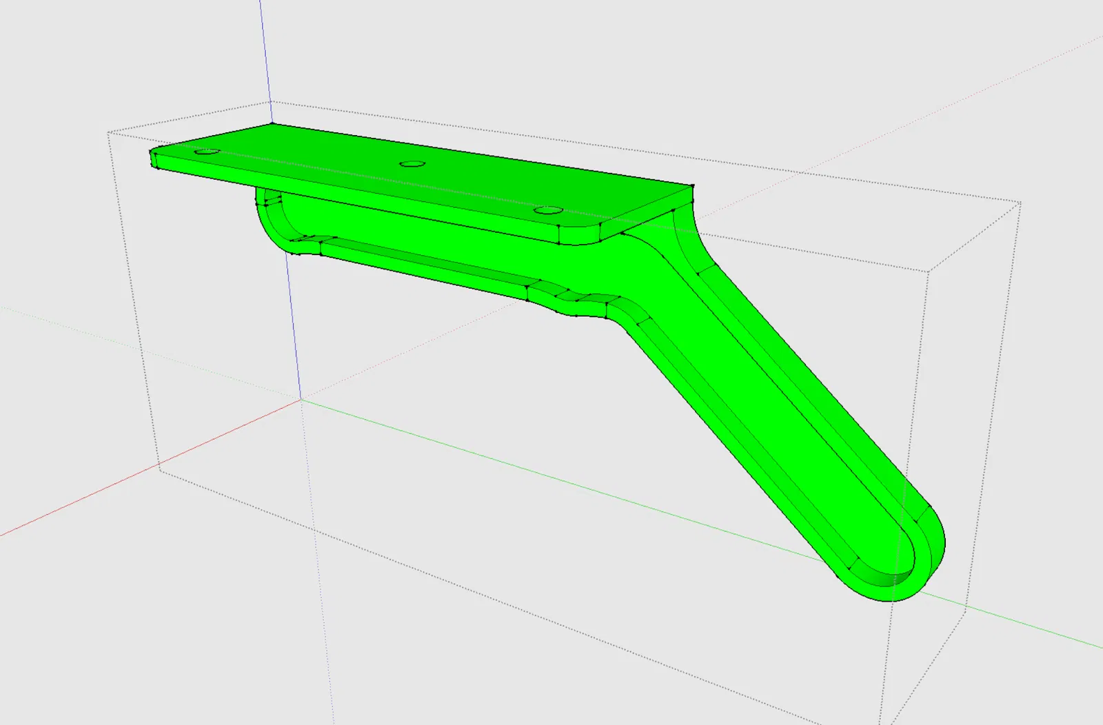 Thế nên khi tui in cái hộc tủ thứ hai cần xài, tui đã thiết kế một cái khuôn/giá đỡ đơn giản, xài xong bỏ, in mất khoảng 20 phút. Sẵn tiện, tui cũng dời vị trí lỗ bắt vít (thực ra là tui làm đối xứng nó lại) để tui có thể bắt mấy cái khung ray đã sửa đổi vô mấy lỗ mới trên phần chưa bị hư của cái kệ.