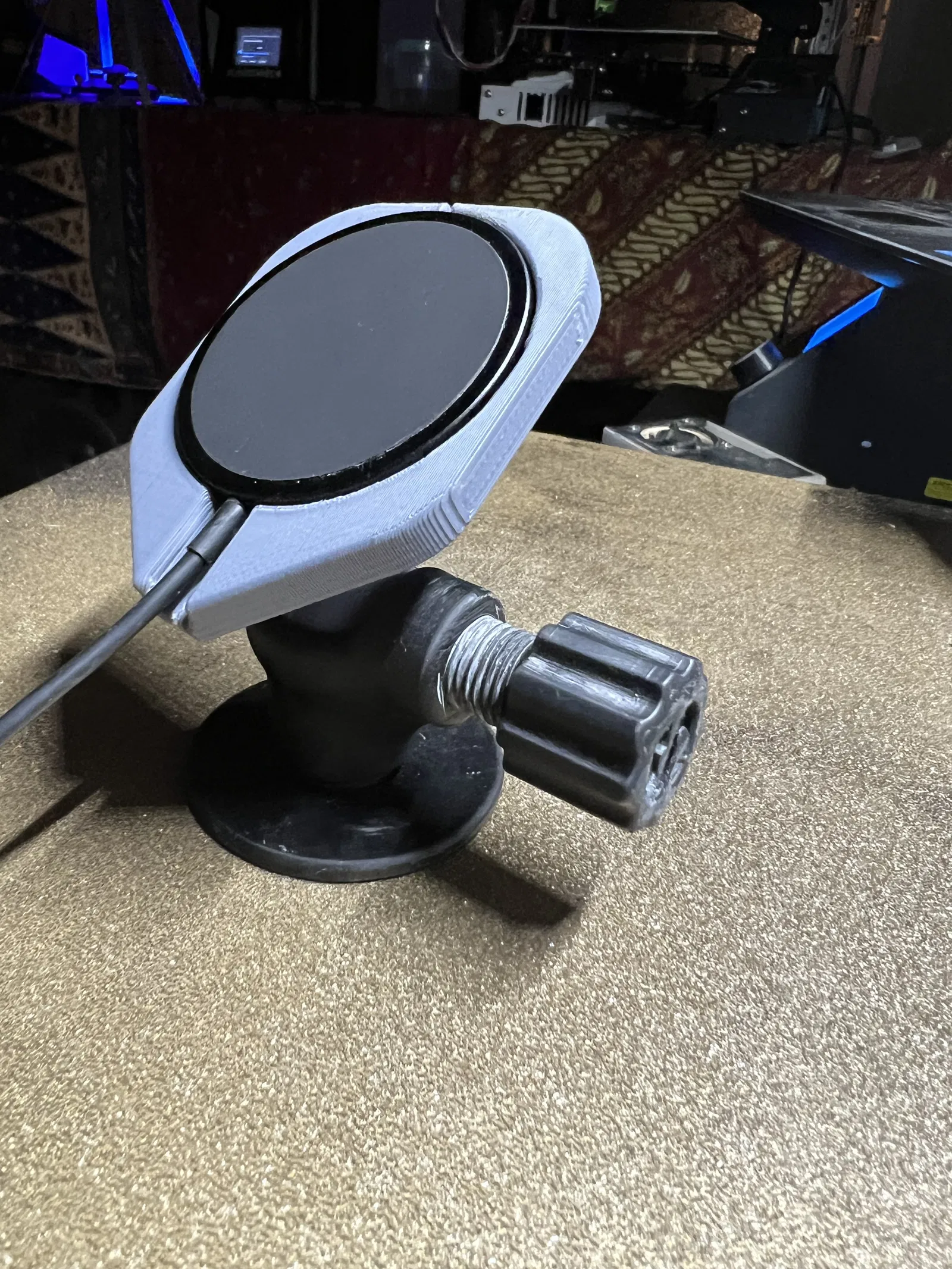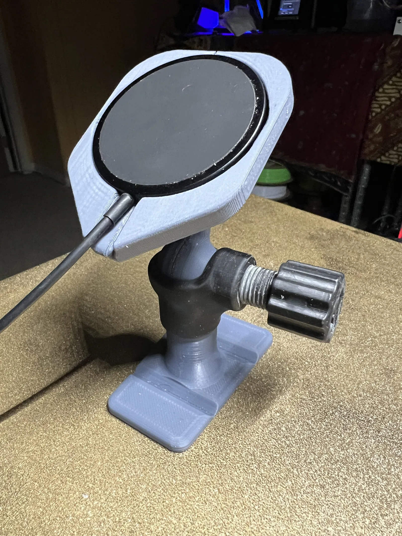 Tui muốn làm một phiên bản có thể gắn sạc Magsafe vào giá đỡ, thay vì chỉ dùng đế giữ nam châm. Phù hợp với sạc Magsafe có đường kính 56mm.