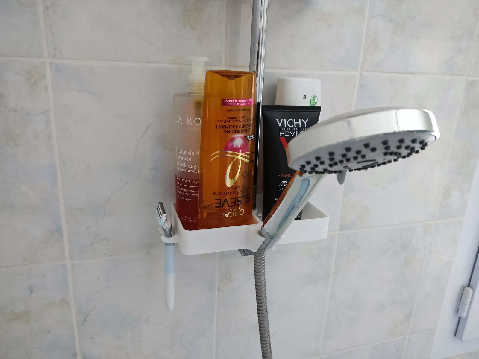Bộ phụ kiện nhà tắm 3 trong 1, tích hợp giá đỡ vòi sen, kệ đựng dầu gội, sữa tắm và giá cắm dao cạo râu. Thiết kế tiện lợi, dễ dàng lắp đặt, không cần hỗ trợ. Phù hợp cho mọi không gian phòng tắm.