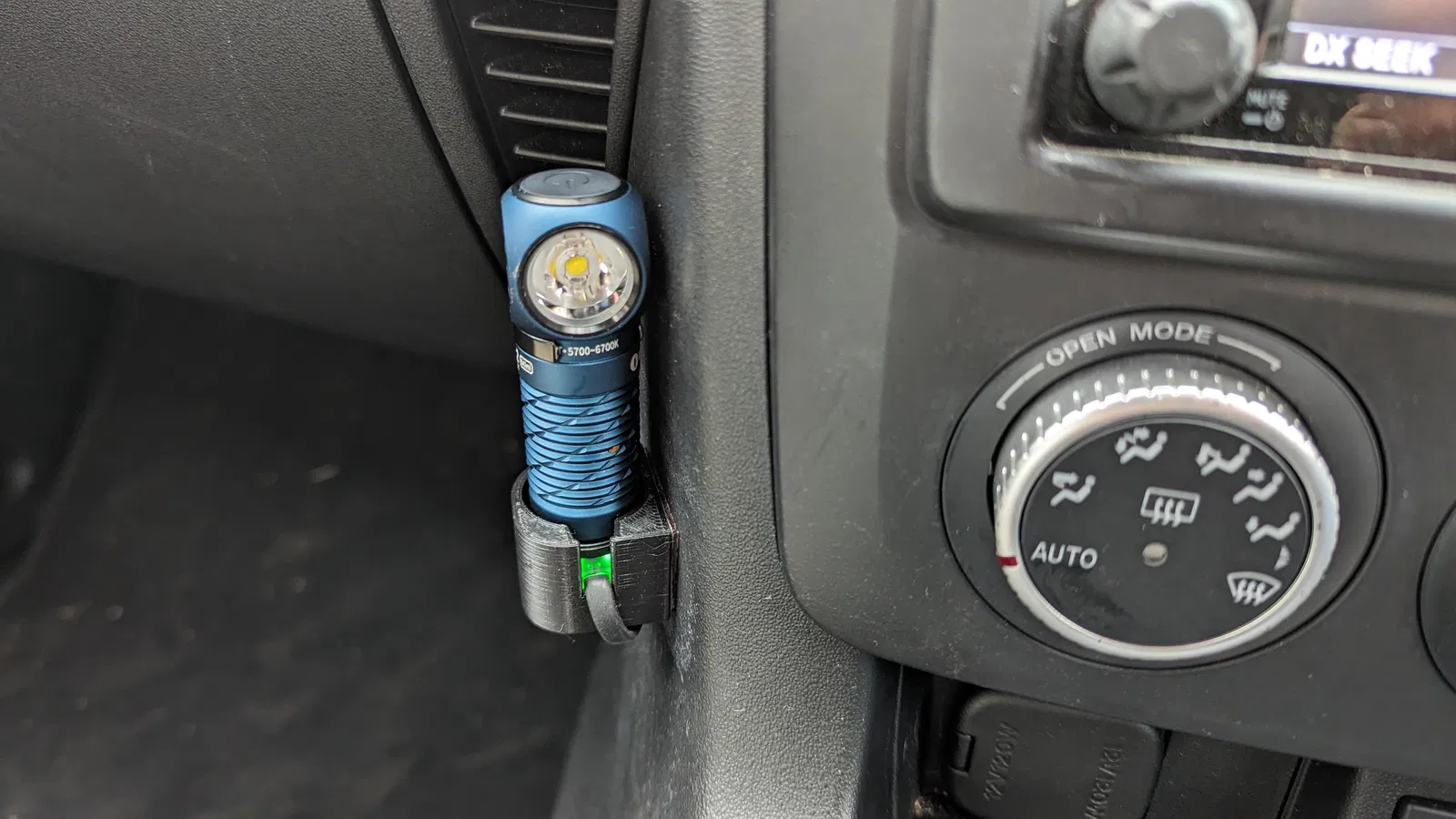Cái đế này dùng để đựng sạc Olight MCC 1A và đèn pin Perun 2 Mini. Thiết kế để dán lên bề mặt bằng băng keo 3M VHB, đế sạc vừa khít, có thể đẩy ra từ phía dưới. Có thể lật bản in theo trục X. Phiên bản 8 độ để gắn thấp hơn trên bảng điều khiển trung tâm.