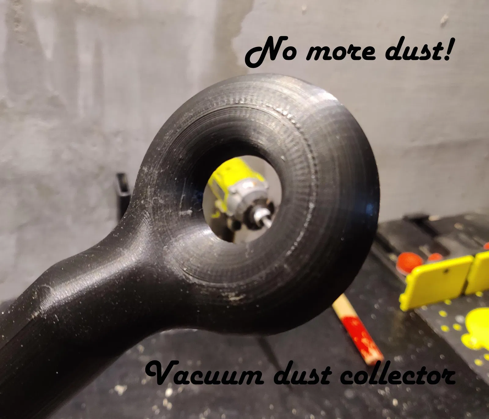 Máy hút bụi kiêm hứng bụi cho khoan tường, tự động dính vào bề mặt. Hút sạch mọi loại bụi khoan với đầu hút tiêu chuẩn, dùng được cho mũi khoan 26mm. Chất liệu PLA, file STL.