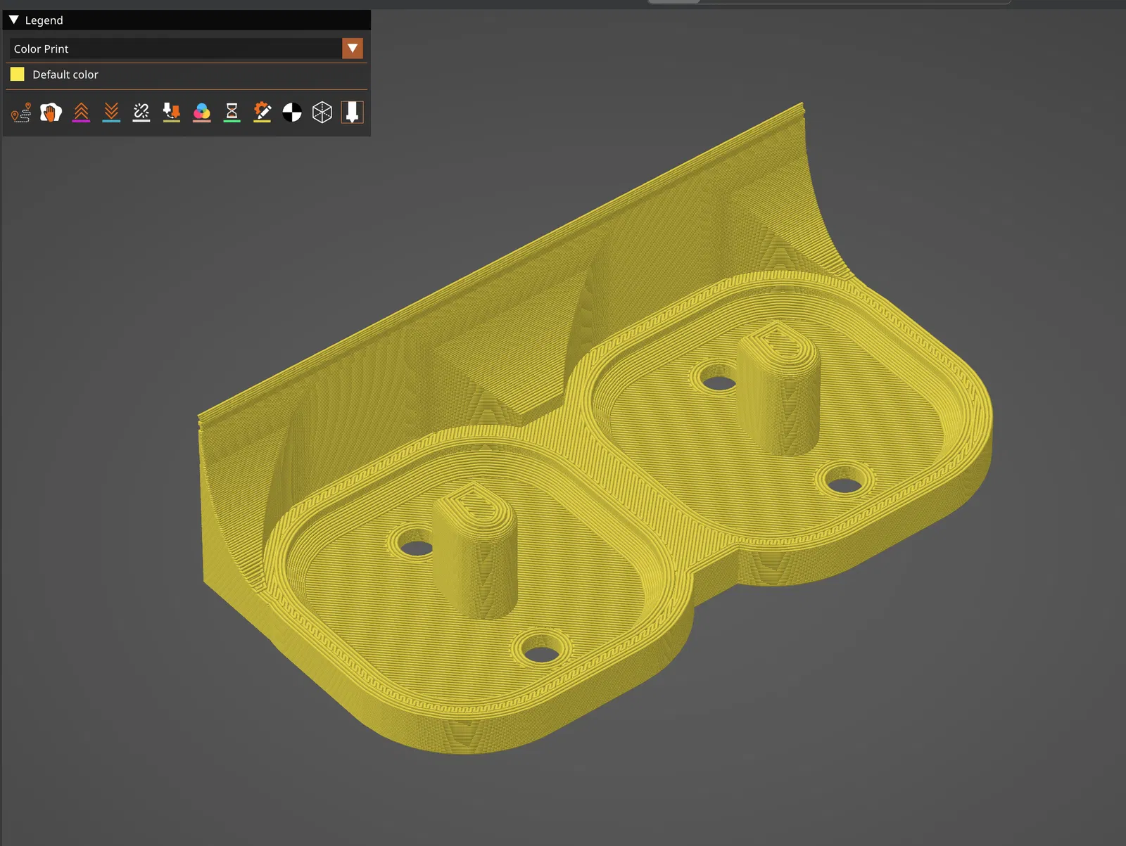 Giá đỡ gắn tường đôi cho bàn chải đánh răng Oral-B, thiết kế để dán lên gạch men phòng tắm. Có thêm lỗ thoát nước. In bằng PLA+ với độ đặc ruột 15%.