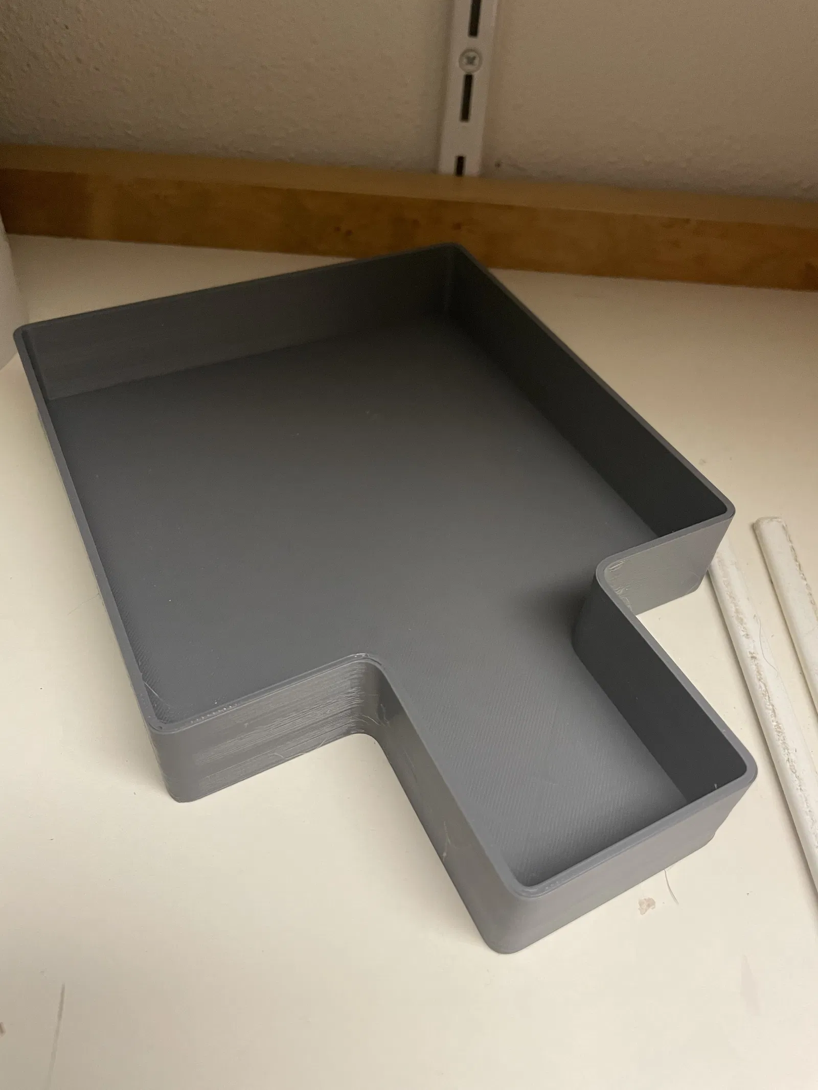 Tui có làm một cái khay để đặt thùng rượu vang vô, để tránh cái vòi nó rớt xuống sàn nhà mình trong cái kho. Vừa với thùng rượu vang của Costco/Kirkland. Có thể thêm mút hoặc chân cao su để chống trượt nha.