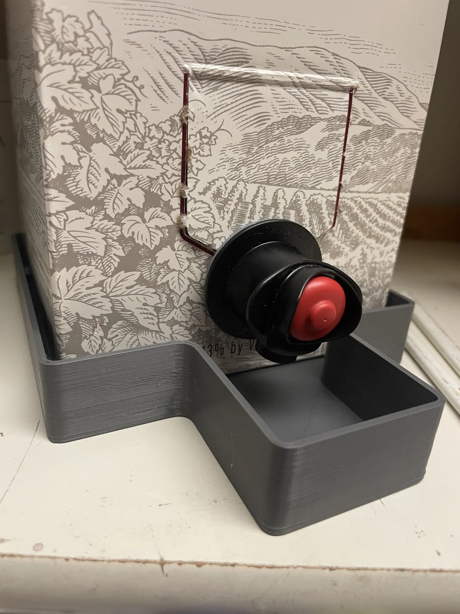 Khay đựng chống nhỏ giọt cho rượu vang dạng hộp. Vừa với thùng rượu vang của Costco/Kirkland. Thêm mút hoặc chân cao su để chống trượt.