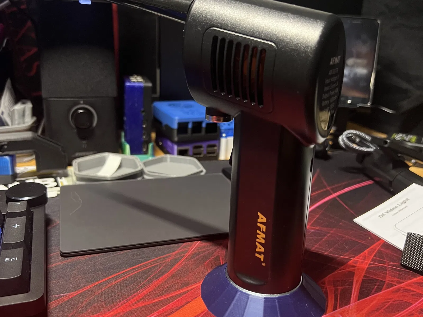 Tôi đã mua cái máy thổi khí này trên amazon và nó không đứng vững, vì vậy tôi đã quyết định làm một cái chân để nó có thể đứng mà không bị ngã khi chạm nhẹ. Giờ thì nó không thể bị đổ một cách tình cờ (trừ khi bạn va vào nó thật mạnh, tất nhiên).