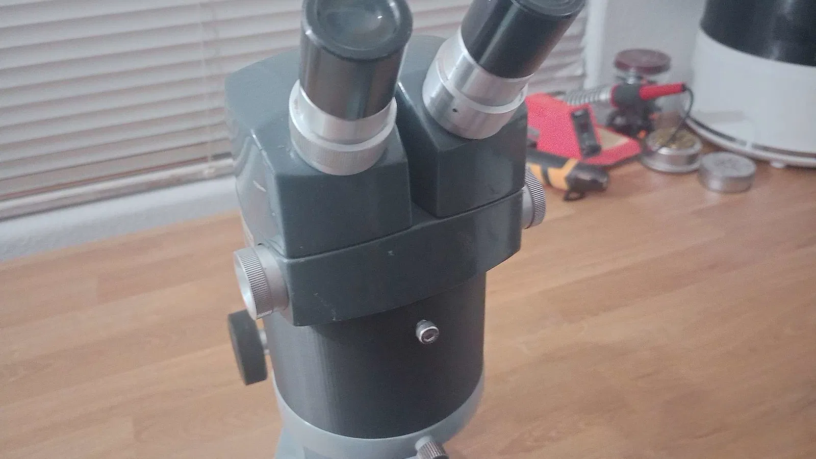 Tui chế cái riser này để nâng đầu kính hiển vi American Optical 569 lên 76.5mm, để gắn thêm ống kính phụ .5x. In bằng PLA, tui còn gắn được cả đèn LED vòng Amscope 144 lên nữa đó nha.