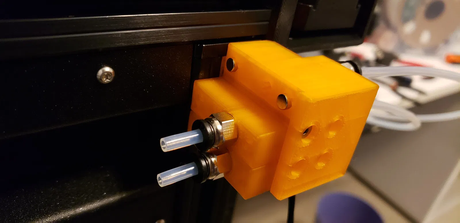 Tôi làm mod này vì tôi chán việc ống PTFE bị tuột ra khỏi phía sau của các khối cảm biến chính hãng. Tôi cũng muốn kết nối ống PTFE của mình trực tiếp với hộp chống ẩm và vẫn có thể tháo filament khi hết dây.
