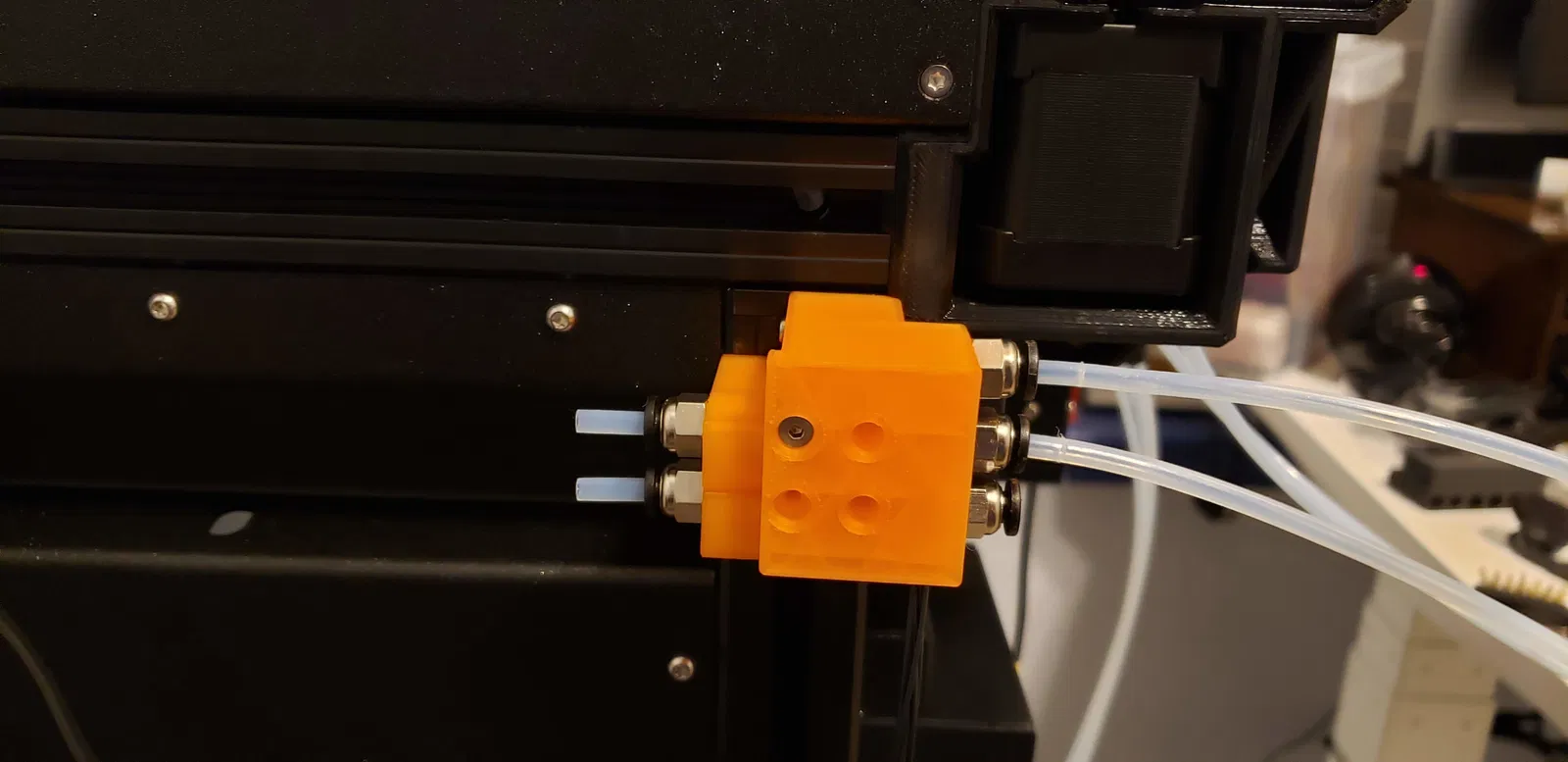 Tôi đã hoàn thiện thiết kế với một số kẹp collet để đảm bảo ống PTFE sẽ giữ nguyên vị trí.
