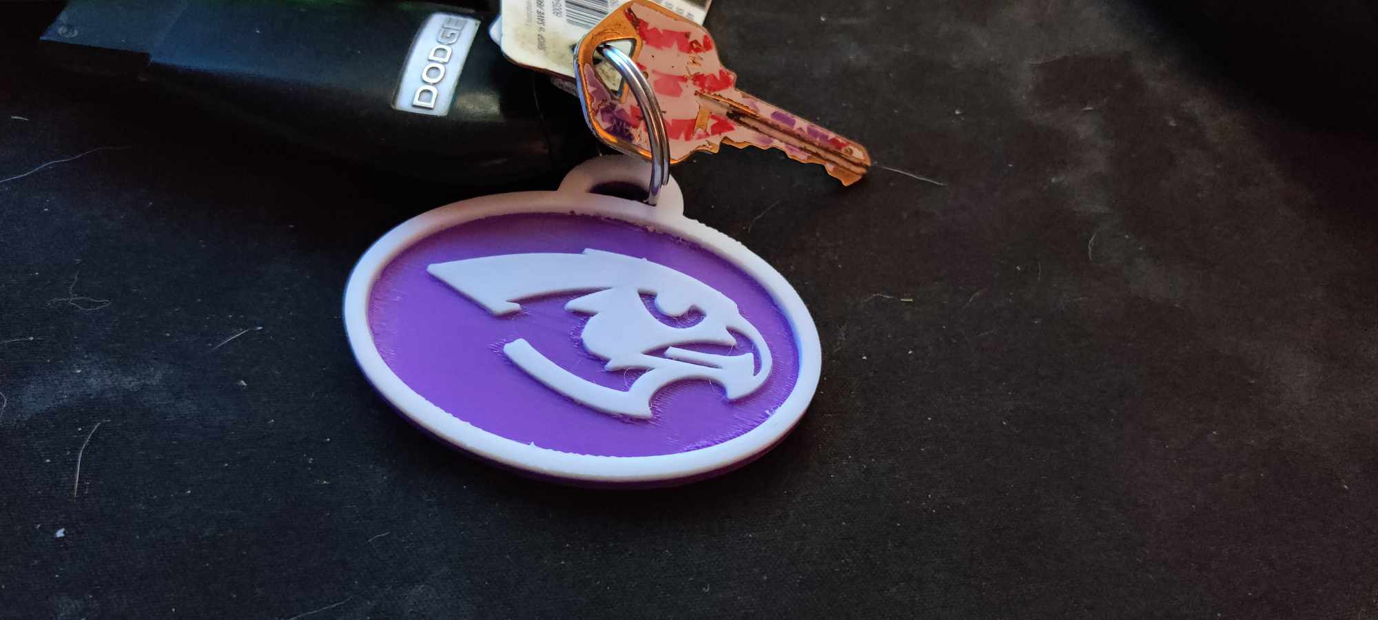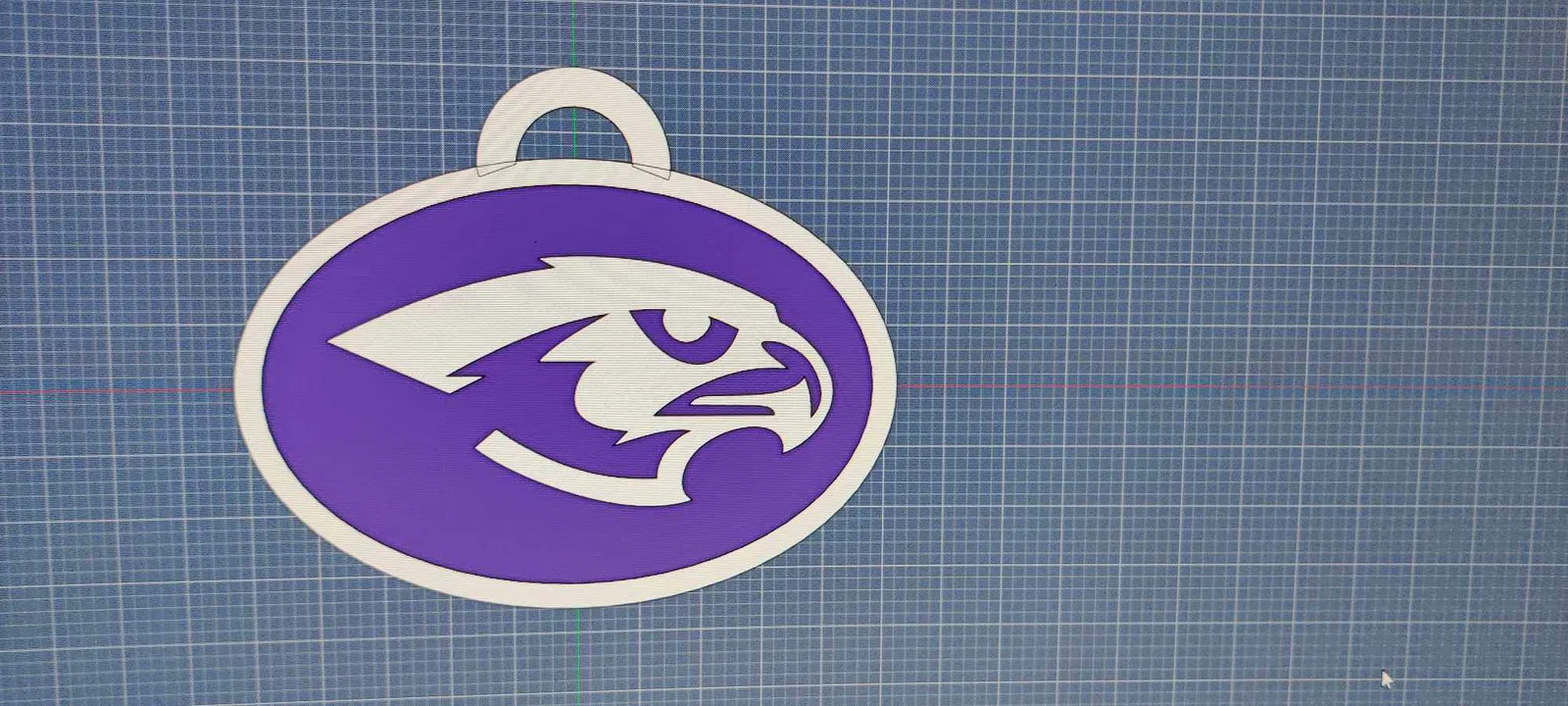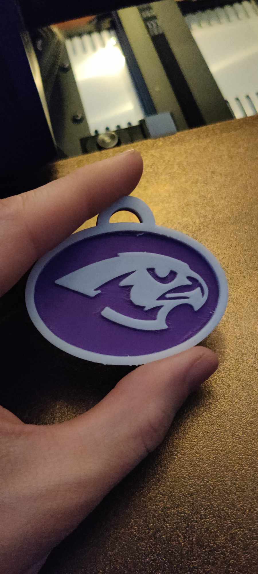 Mẫu móc khóa nhỏ tui làm cho thị trấn quê tui nè. Chuyển màu lớp cho phép bạn in màu nền và chim ưng/viền khác nhau nếu muốn in 2 màu.