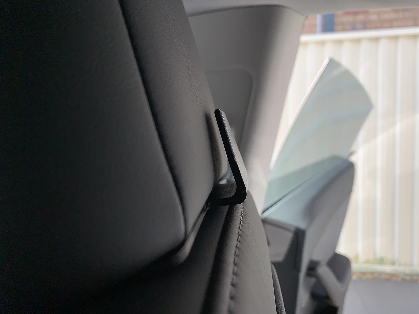 Cái móc treo này giúp bạn treo túi xách sau ghế trước xe Tesla Model 3, tránh kích hoạt cảnh báo dây an toàn. Thiết kế thứ hai này tận dụng các trụ gác đầu ghế, in bằng PLA+ hoặc PETG. Hãy để lại phản hồi nếu bạn thấy hữu ích nhé.