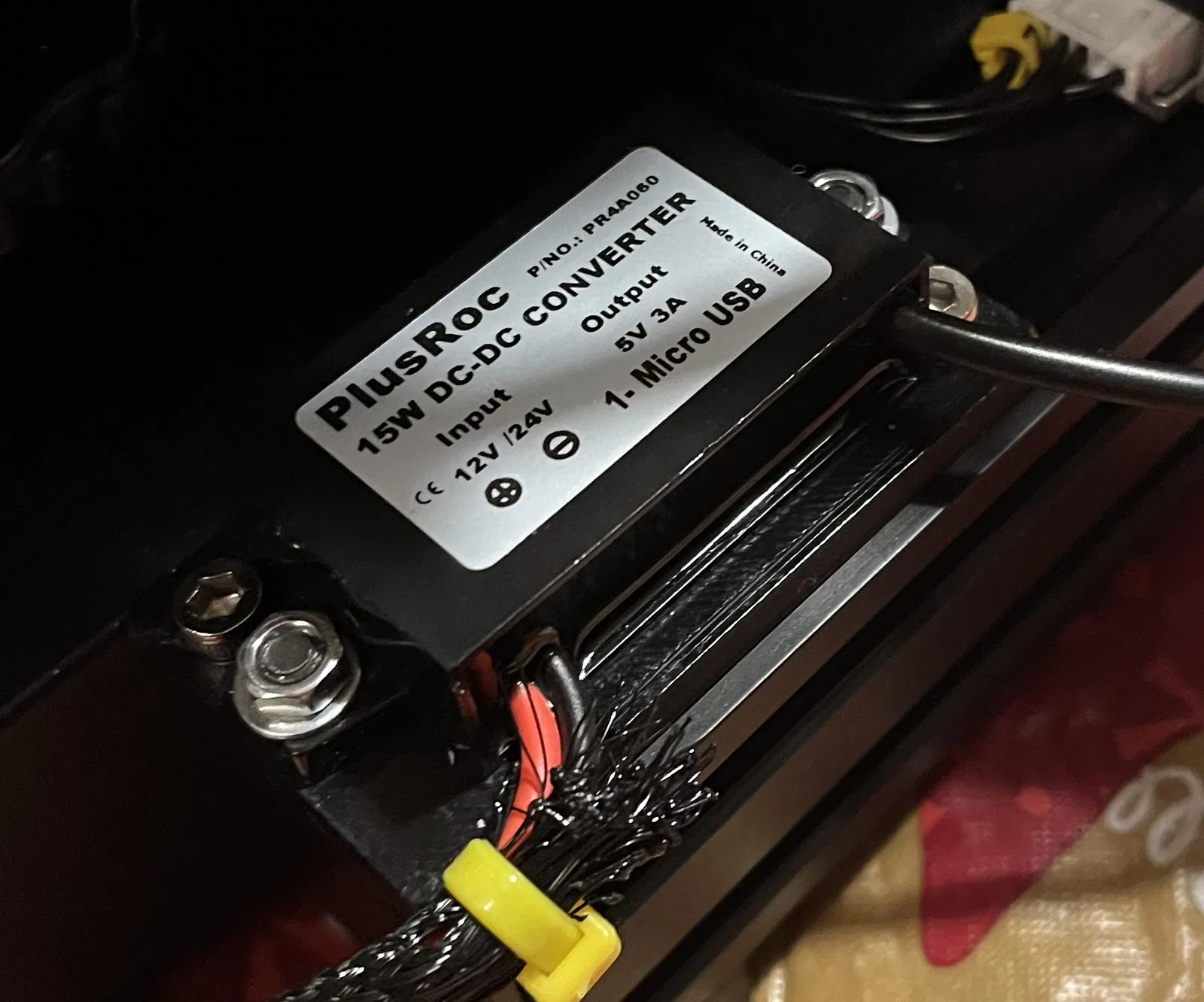 Tui tạo một cái đế để gắn cái bộ chuyển đổi nguồn 12V/24V sang 5V DC-DC của PlusRoc (loại có đầu nối Micro USB) lên máy in của tui.