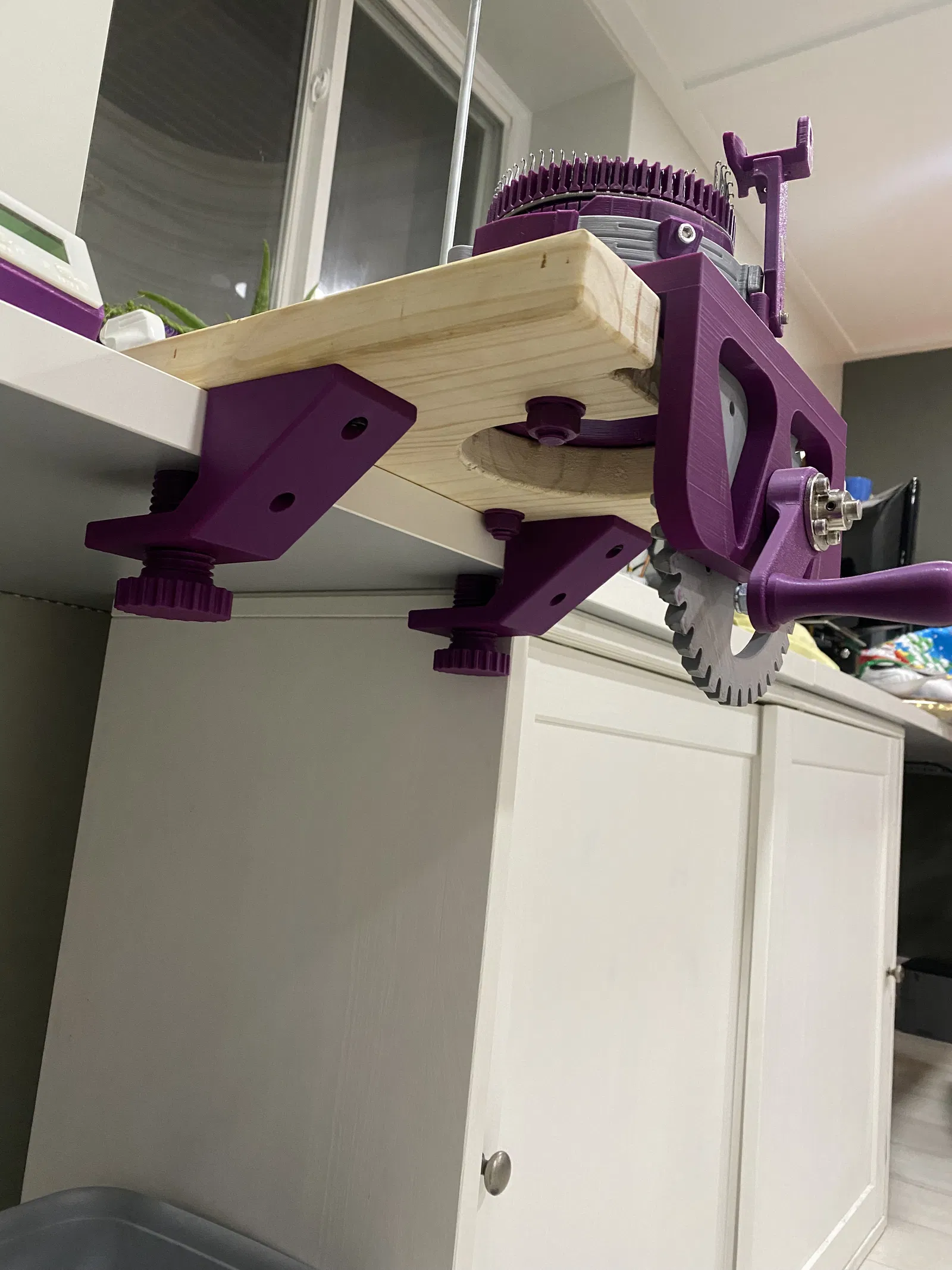Cái kẹp bàn này xài ngon lành cho mấy dòng máy vớ gia đình với máy vớ vòng tròn luôn nha. Nhớ là xài ốc vít thạch cao loại thường, độ sâu khoảng ½ inch là okela. In bằng Polylite PLA Pro với 30% infill là đẹp, không cần support đâu.