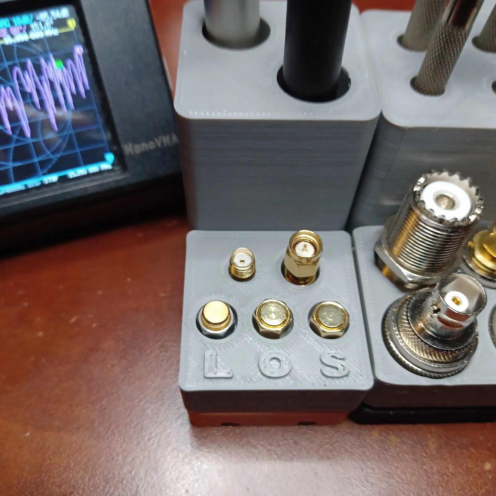 Tui hay để bộ hiệu chuẩn của tui trong cái bọc zip nhỏ… Giờ tui có cái khay này để trên bàn khi tui xài Nano VNA… Xong rồi thì cất nó vô grid trên kệ để đồ.
