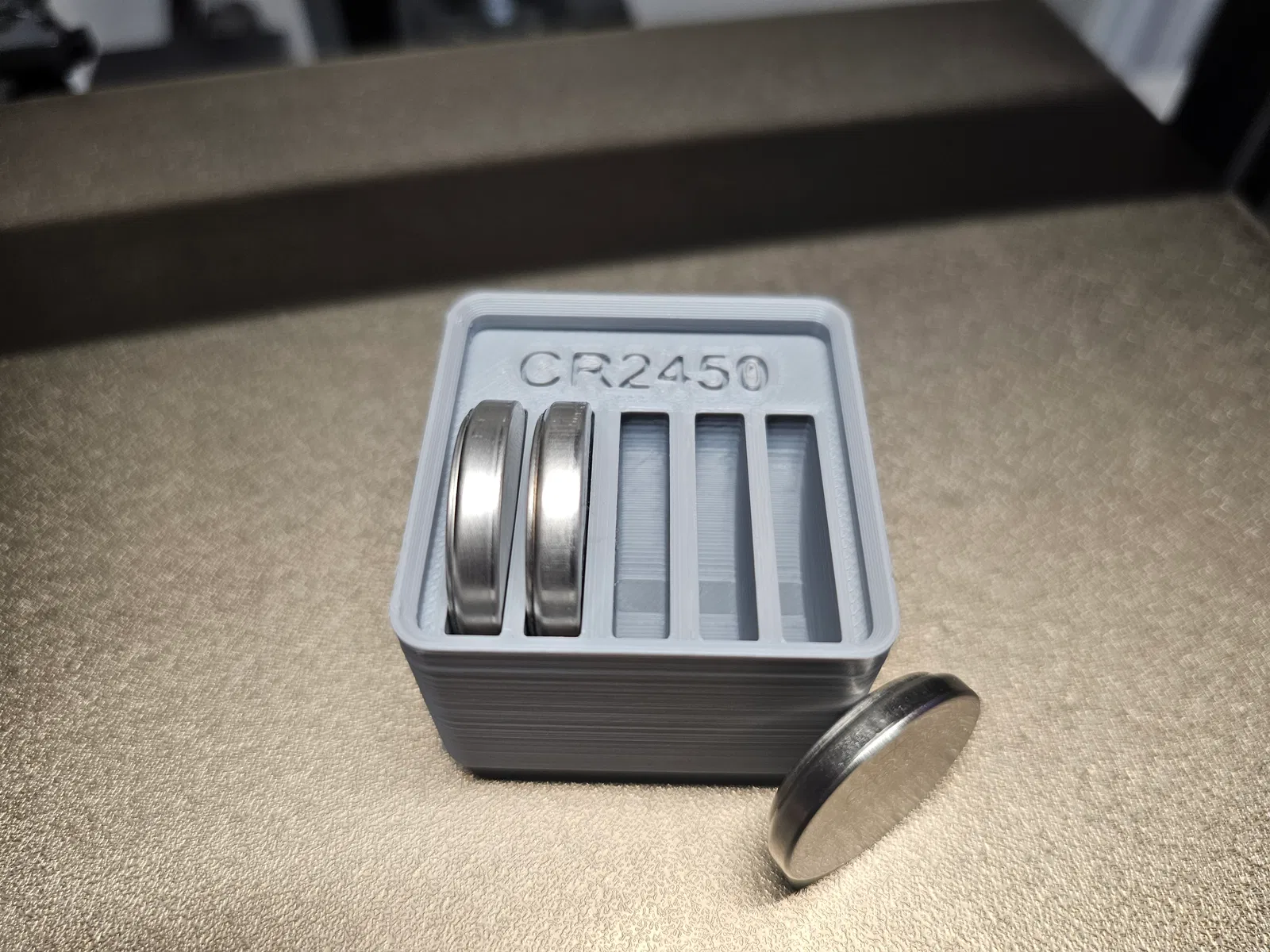 Hộp đựng pin CR2450 theo chuẩn Gridfinity. Kích thước (1x1x4). Giữ pin CR2450 của bạn ngăn nắp và dễ dàng truy cập. Hoàn hảo cho các dự án 3D printing cần lưu trữ pin gọn gàng.