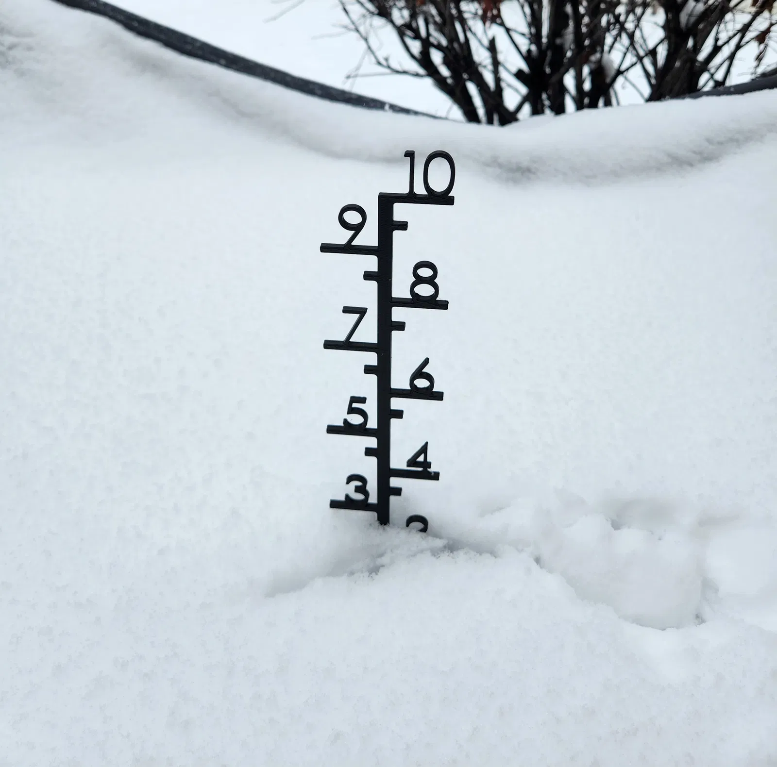 Cọc đo tuyết "Snow Stake" dùng để đo lượng tuyết rơi. Cọc dài 10 inch, có thể dán keo vào đế. Người dùng có thể in thêm bộ phận nối dài nếu cần.