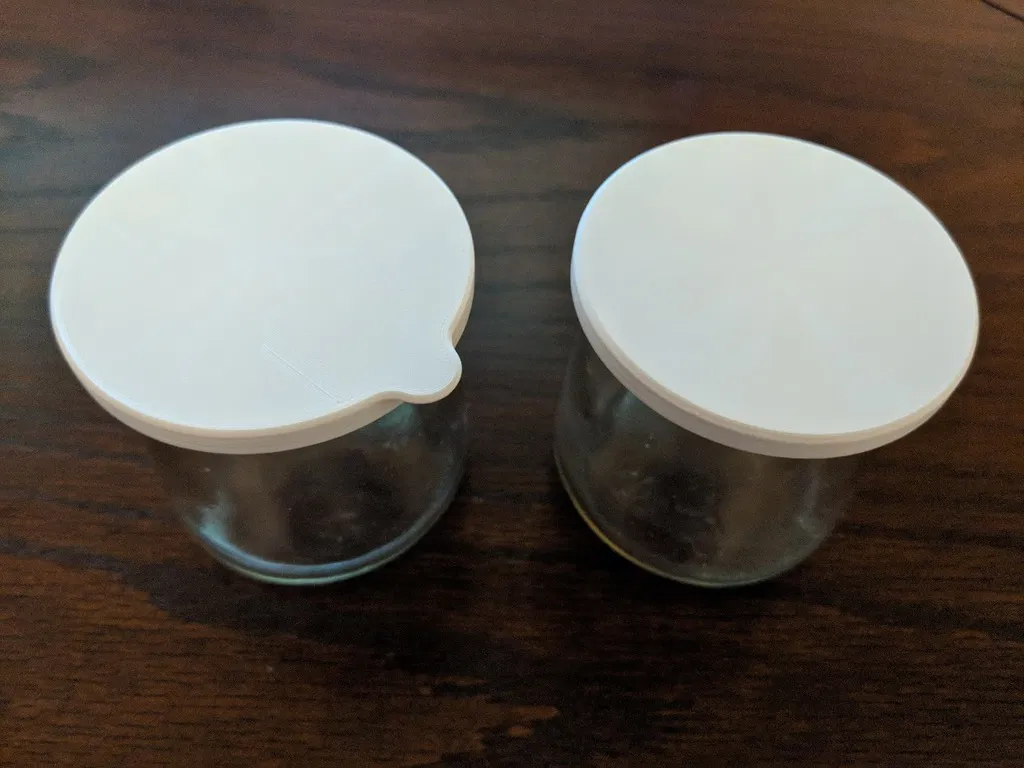 Lids snap-on cho lọ sữa chua OUI, có hoặc không có tab để dễ dàng loại bỏ.