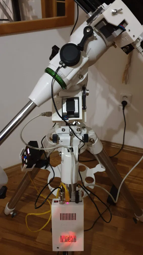 - Polar Scope Iluminátor LED serial connected with 1kΩ rezistor. In STM32 board plug to MULTI socket 3V3 pin and reticle pin.