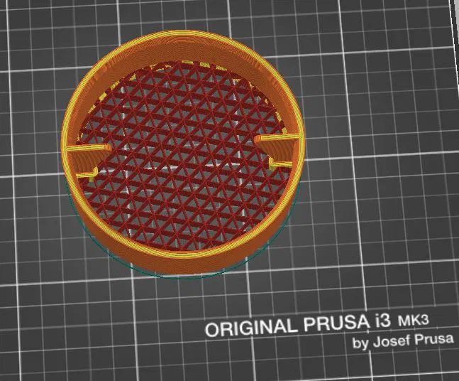 Cái rổ này dùng để lọc cặn bẩn khỏi thùng nhớt đã qua sử dụng. Miệng rổ loe ra ở phía trên và rộng 105mm ở điểm rộng nhất. Vừa khít để nhét vào khay hứng nhớt của tui mà vẫn lấy ra vệ sinh được. Lưu ý là thiết kế lưới lọc này chỉ dùng kiểu infill thôi. Tui phải đặt top và bottom layers bằng 0 để có được hiệu ứng này. Có sẵn Gcode cho MK3S, nếu bạn dùng STL thì cần đặt top và bottom layers bằng 0 và chỉnh infill để có kích thước lỗ lọc mong muốn.
