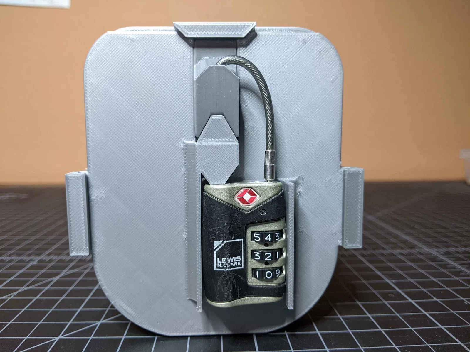Hộp khóa này được thiết kế để sử dụng khóa cáp nhỏ "Lewis 'n Clark TSA007". Bản in có các phiên bản 'Three_Circles' và 'Shell' với nhiều kích thước khác nhau. Lưu ý, đây không phải là giải pháp lưu trữ an toàn.