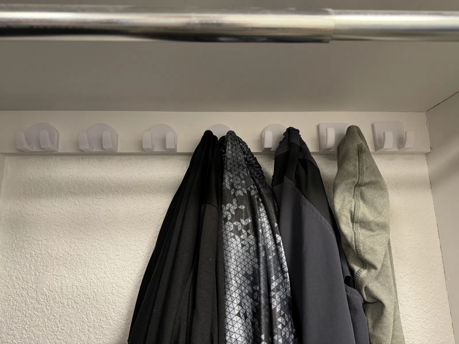 Works great to add some hooks in the closet behind a clothes hanger rod or wherever you need to add extra hooks.