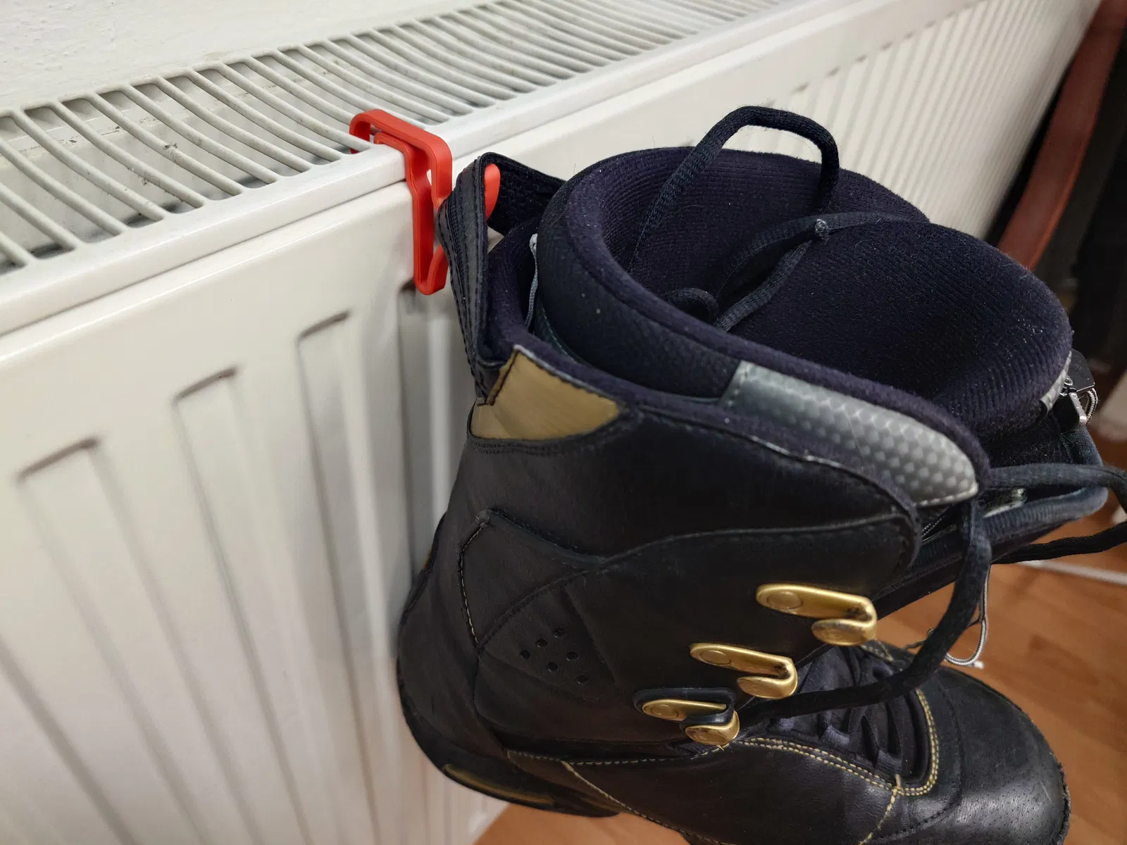 Móc treo tản nhiệt này được thiết kế đơn giản, dễ in và nhẹ. Phiên bản thứ hai có thêm lỗ để gắn cán chổi, tạo chỗ phơi khăn tiện lợi bên cạnh tản nhiệt.