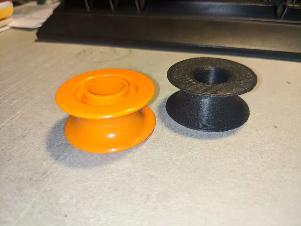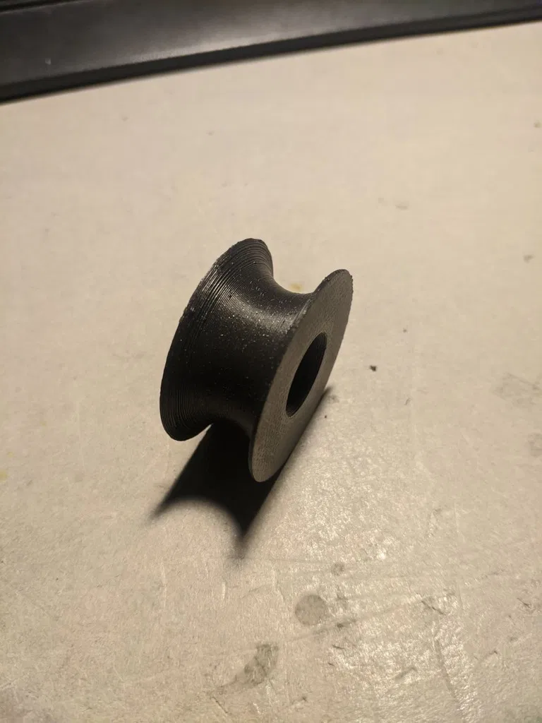 Tái tạo lại thiết kế puly Petzl Ultralegere, có thể gắn carabiner xài cực tiện. Thông số chi tiết: lỗ trong 15mm, ngoài 40mm, dày 18mm. In 100% infill cho trọng lượng 11g.