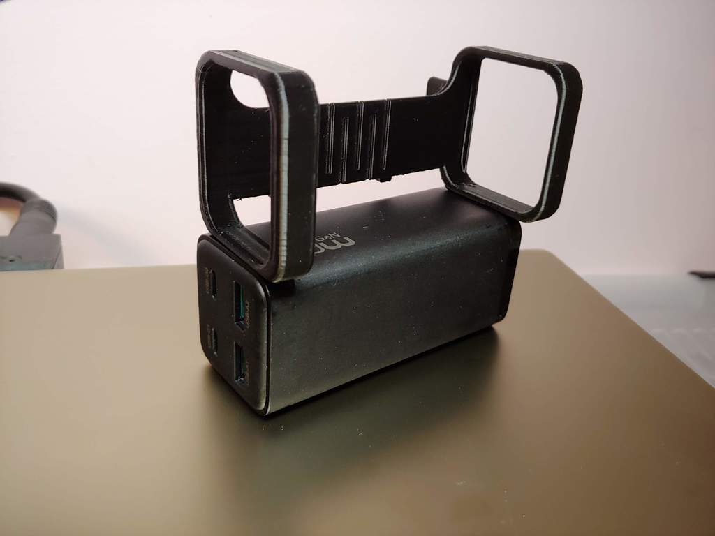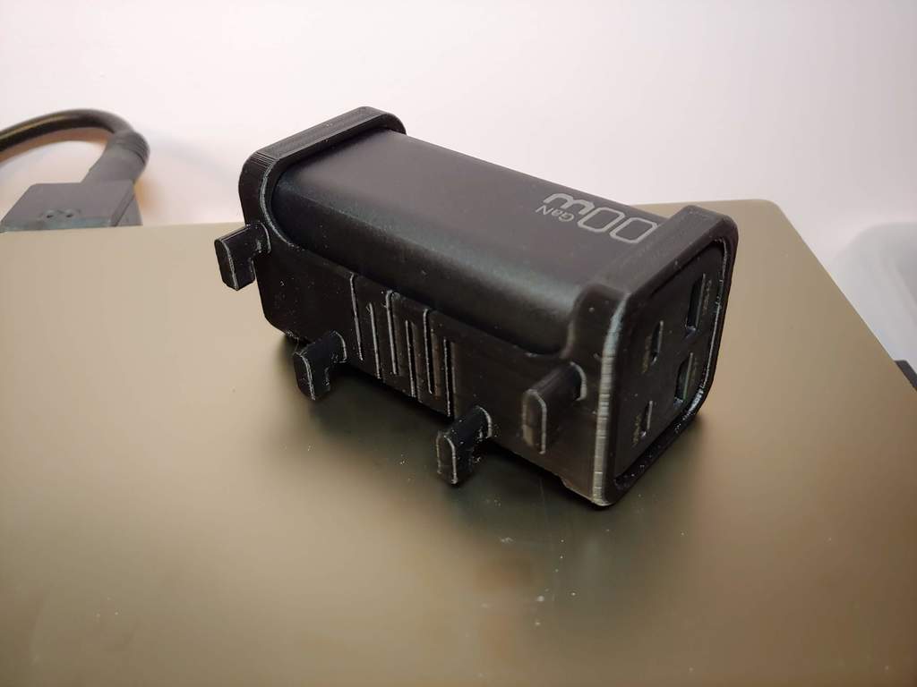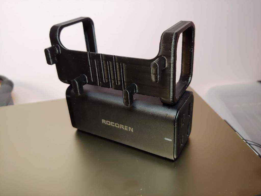 Giá đỡ/kệ cho củ sạc USB Racoren 100W GaN Pro, thiết kế để gắn lên bảng Ikea Skadis. Kích thước củ sạc là 39.5 x 41.5 x 91.5 mm. Yêu cầu in với supports và brim. Filament khuyến nghị là PLA hoặc PETG.