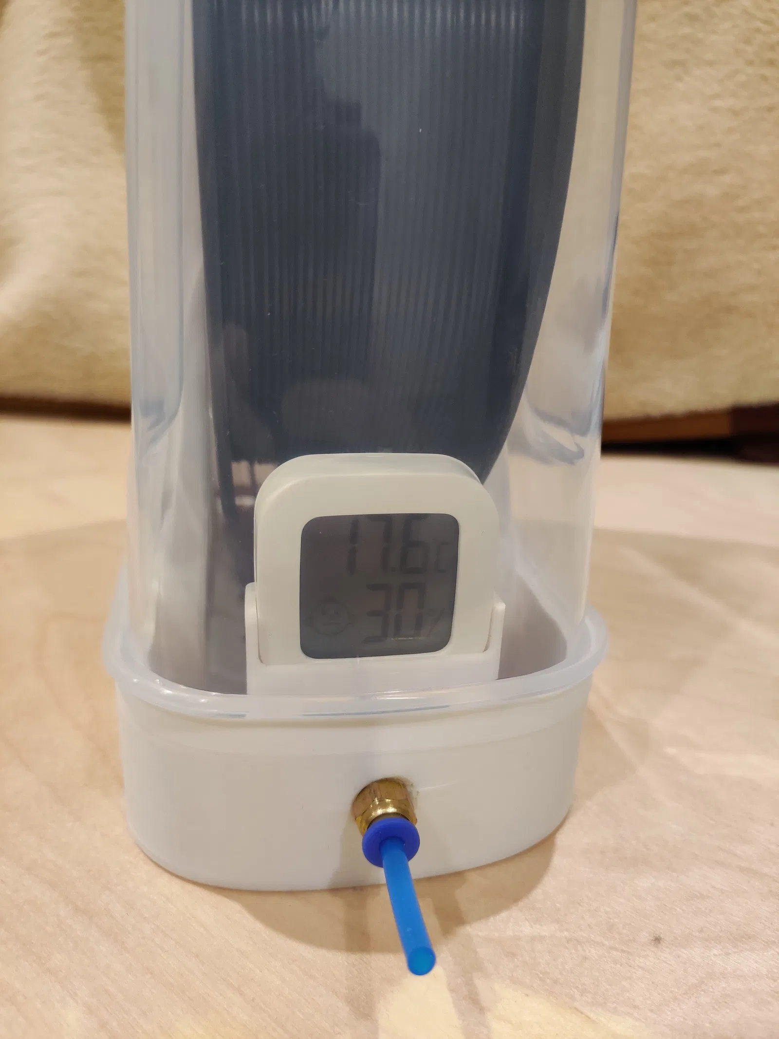 Mình cũng có mua thêm một cái ẩm kế để theo dõi độ ẩm.