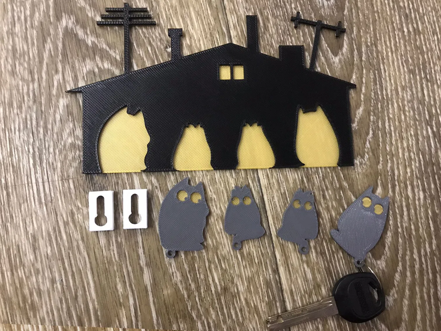 Đây là một bản thiết kế đơn giản nhưng độc đáo, kết hợp chức năng của một chiếc móc treo chìa khóa với vẻ ngoài đáng yêu của một ngôi nhà thu nhỏ dành cho mèo. Sản phẩm này hoàn hảo để bạn có thể giữ chìa khóa của mình gọn gàng và đồng thời thêm một chút nét trang trí ngộ nghĩnh cho không gian sống.