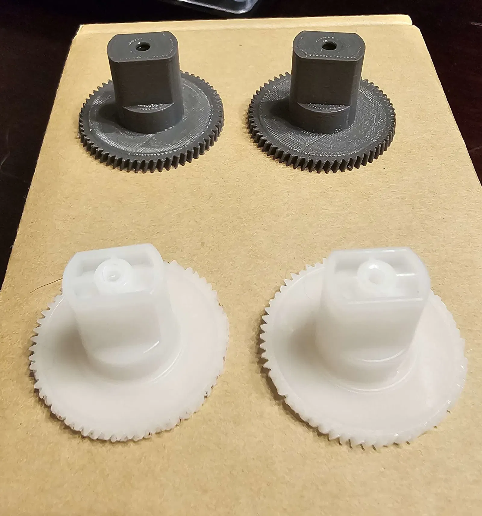 Tôi in cái này bằng sợi Nylon Overture với đầu phun 0.2mm trên máy QIDI X-Max 3. Bánh răng mới là cái màu xám trong hình.